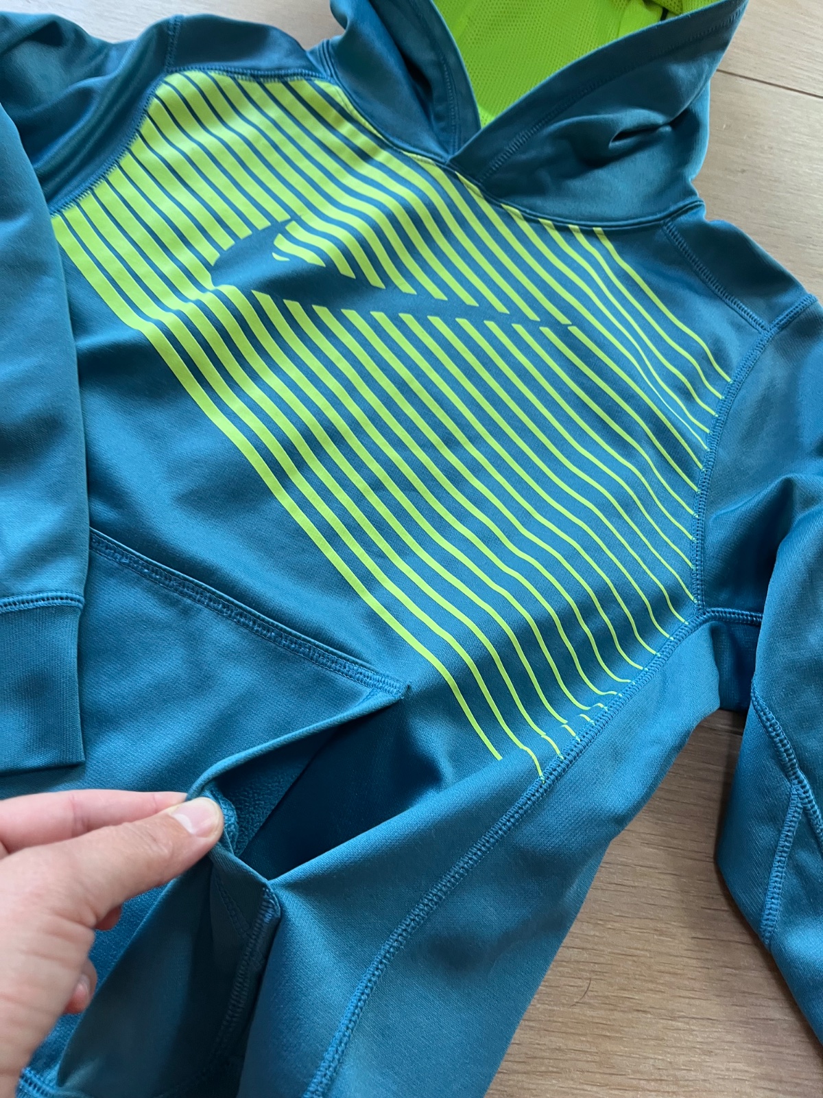 Štýlová mikina Nike velk 137-147 (10-12r) s výraznou žltou farbou. Super športový materiál, nerobia sa zmolky.