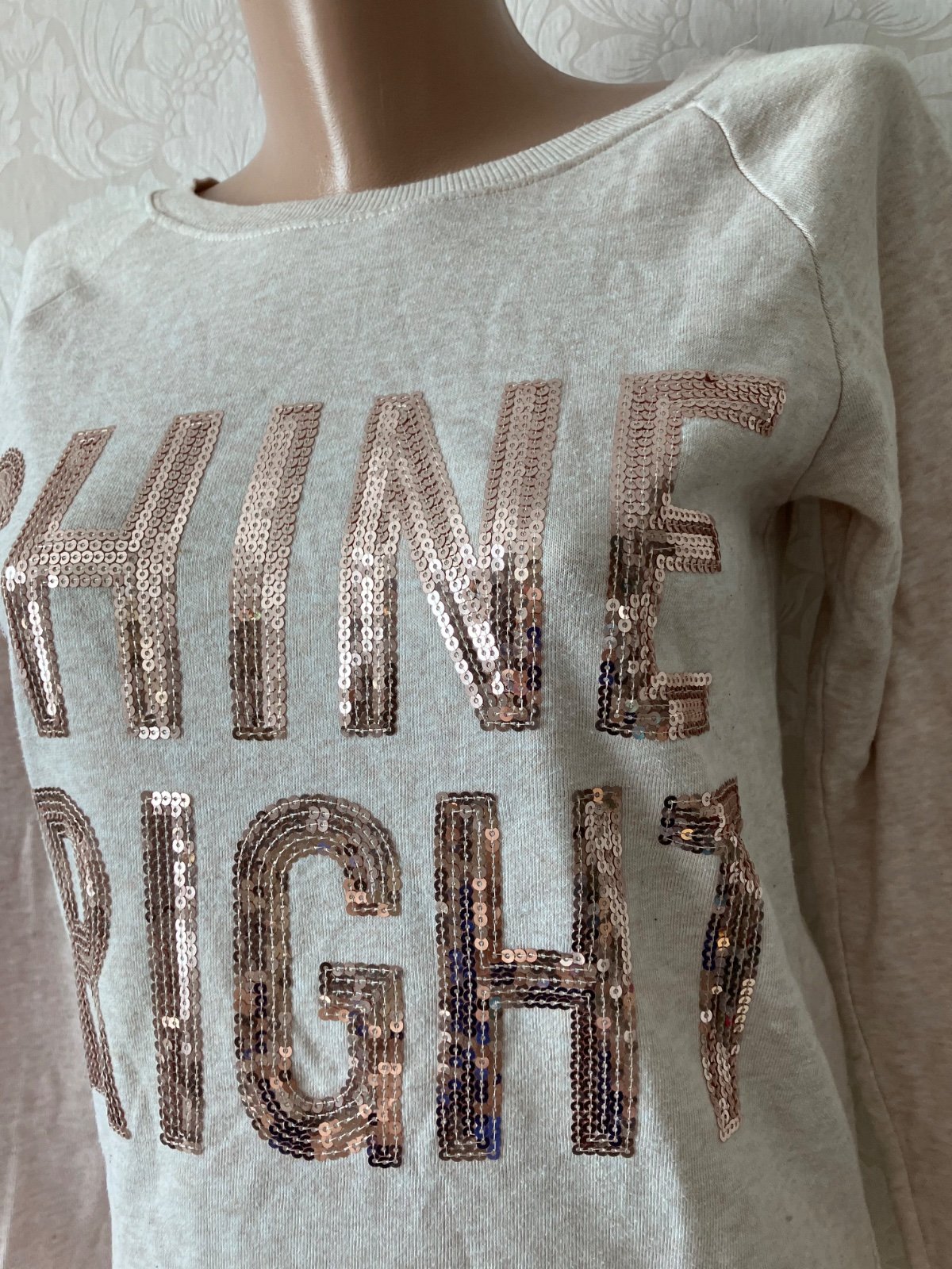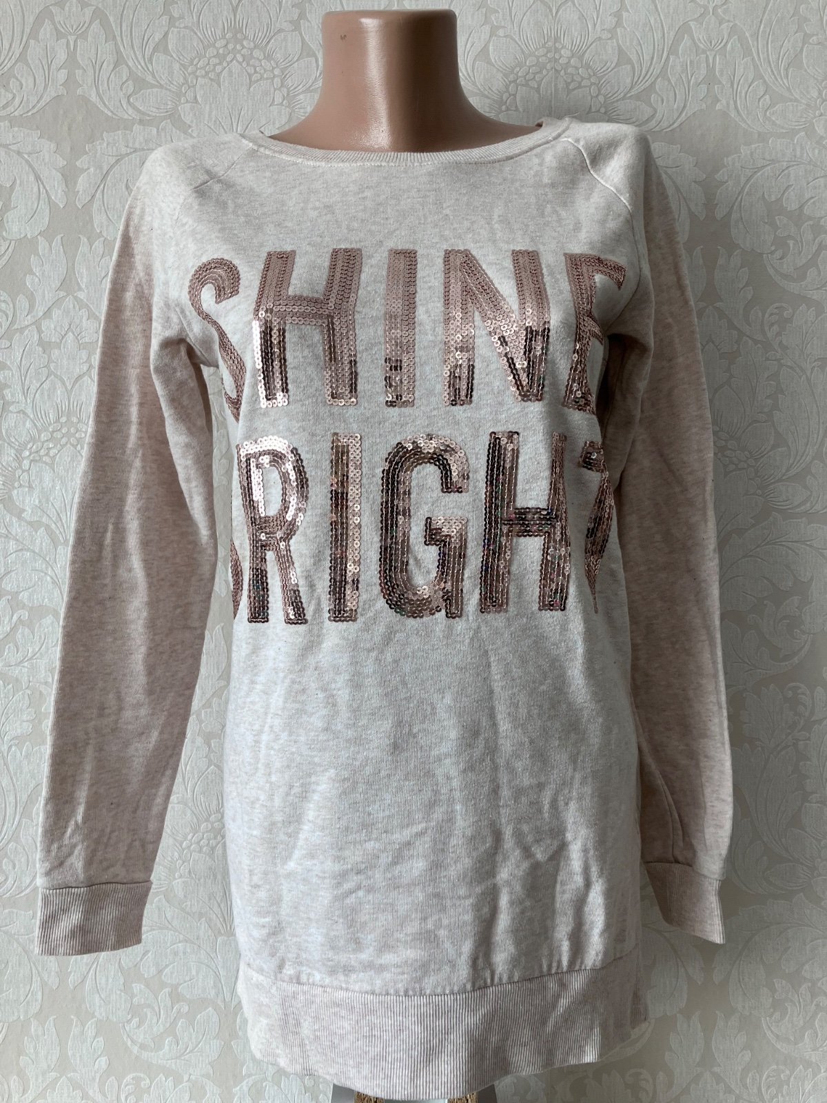 Dievčenská predĺžená mikina s nápisom a flitrami, melírovaná, tenšia, elastická,57%bavlna 43%polyester.