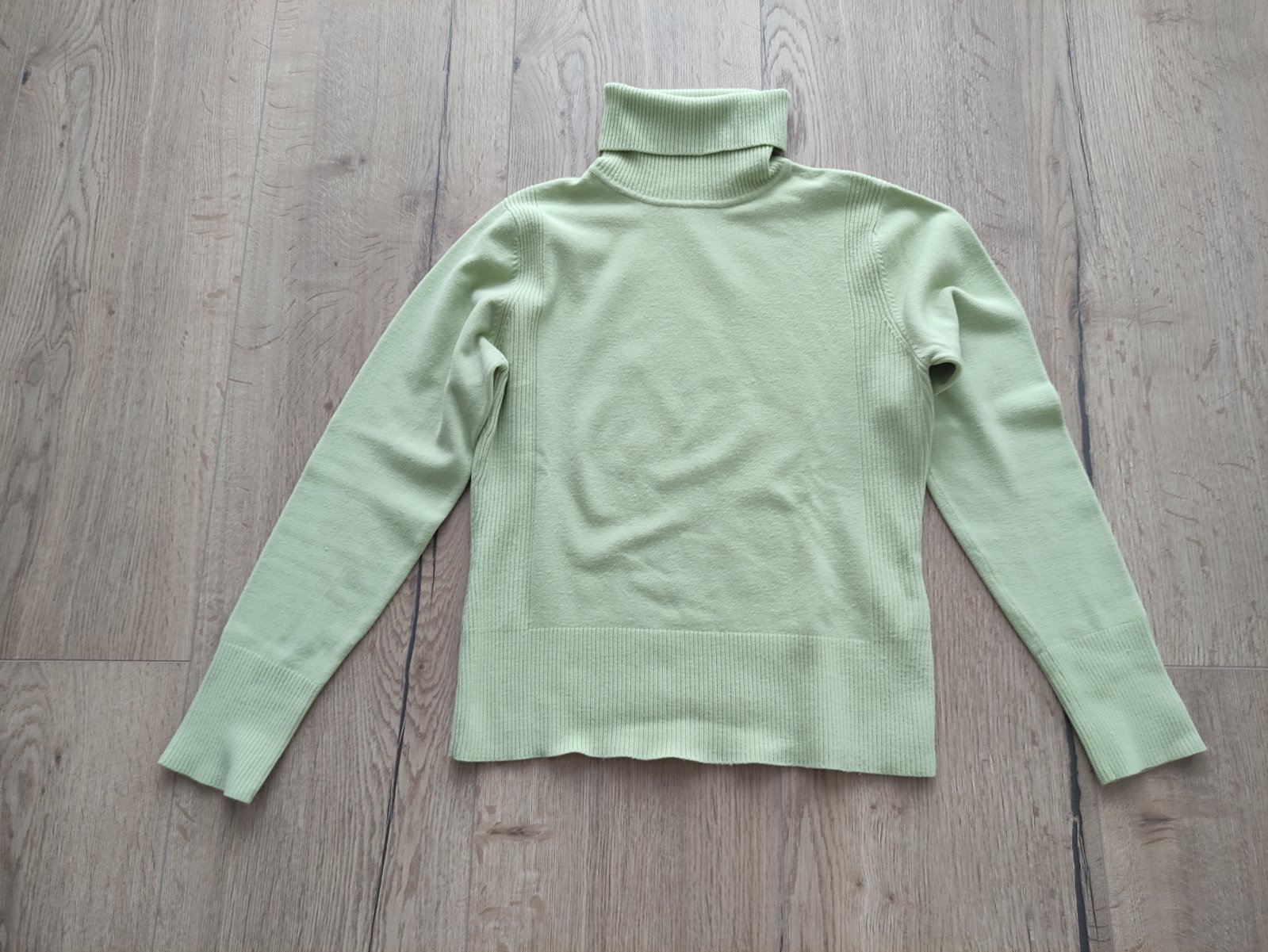zelený acrylový rolák, pružný, v dobrom nosenom stave, materiál acryl, porovnaj si miery. Merajte: šírka pod pazuchami = 41 cm, šírka v páse = 39 cm, šírka dole = 37-43 cm, dĺžka = 40 cm, dĺžka ruk...