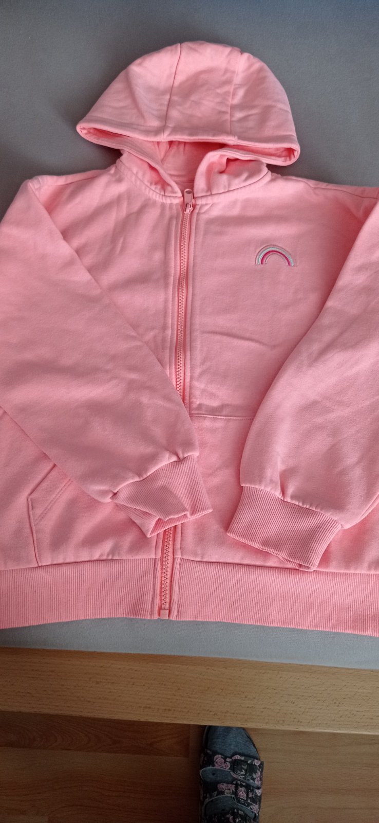 Predám novú, nenosenú, predĺženú mikinu - mikinové šaty, Sinsay, veľ.146, dl.71 cm, šírka 2x46 cm, rukáv od ramena 48+15 cm rameno, cena 3€.