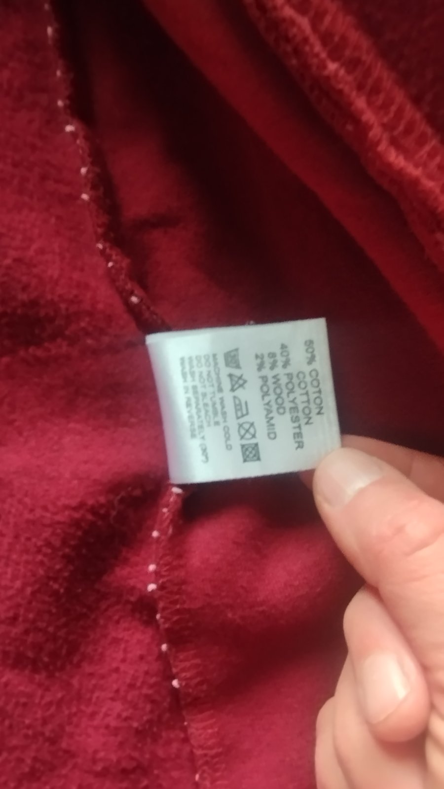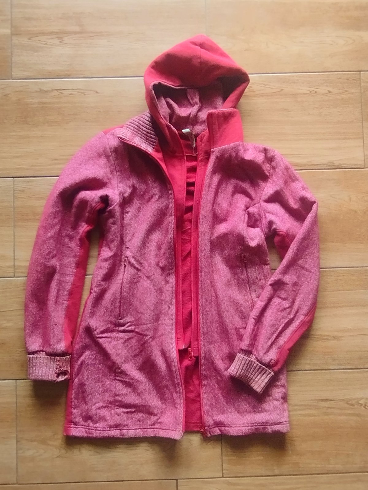 Príjemná predĺžená mikina s dvojitým zipsom,z bavlny a vlny. Ma rukáv.mamžetách známky používania. Veľ.L