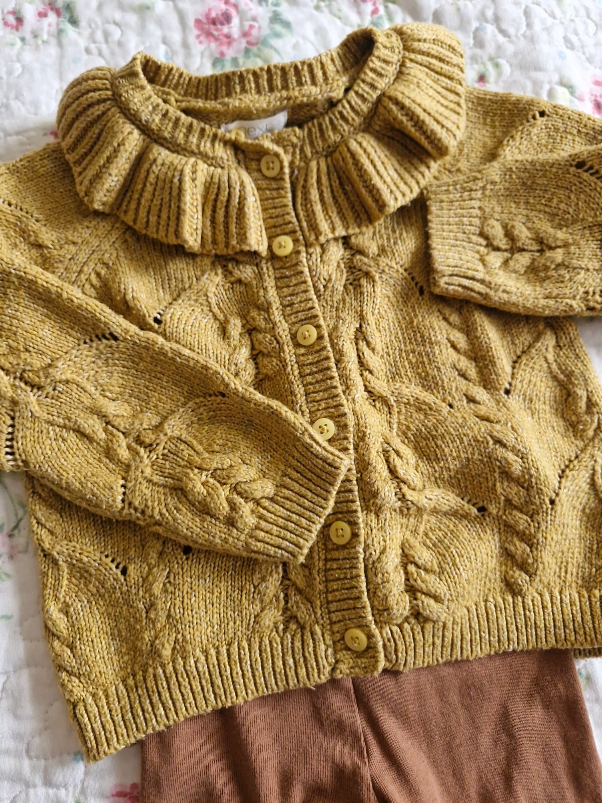 Svetrík na gombíky s golierom, nádherný v horčicovej farbe. Veľkosť 9-12m, 80