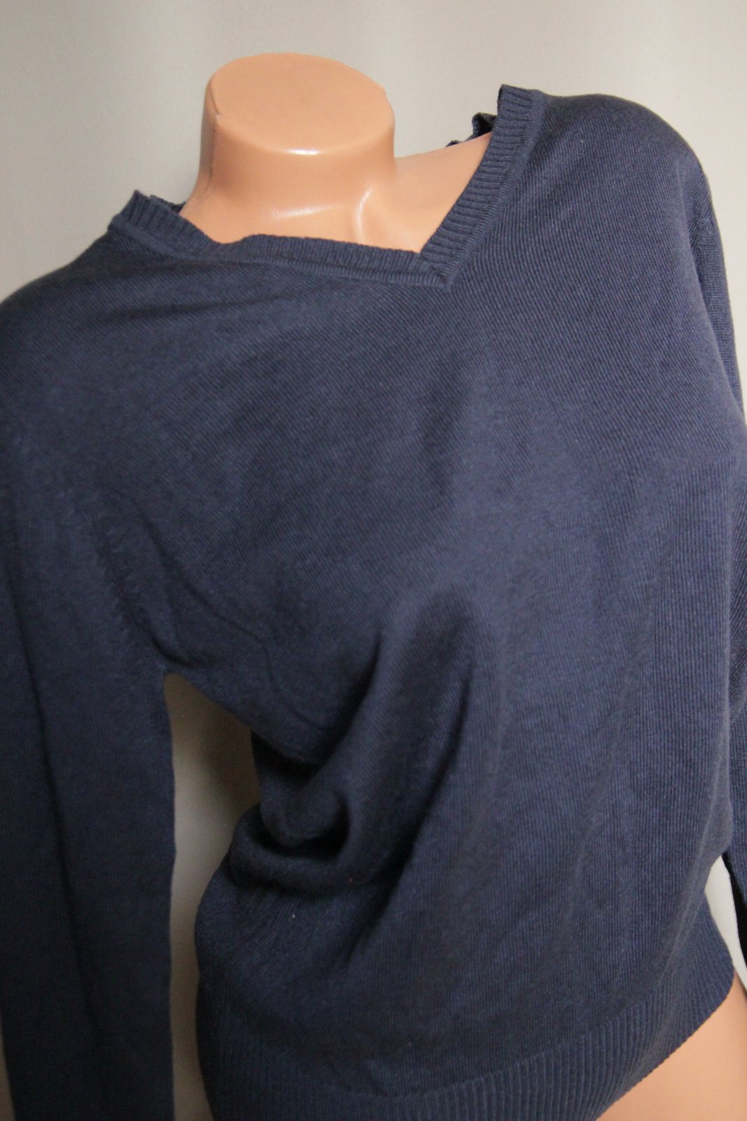 Tmavo modrý sveter s V výstrihom. Veľkosť L.