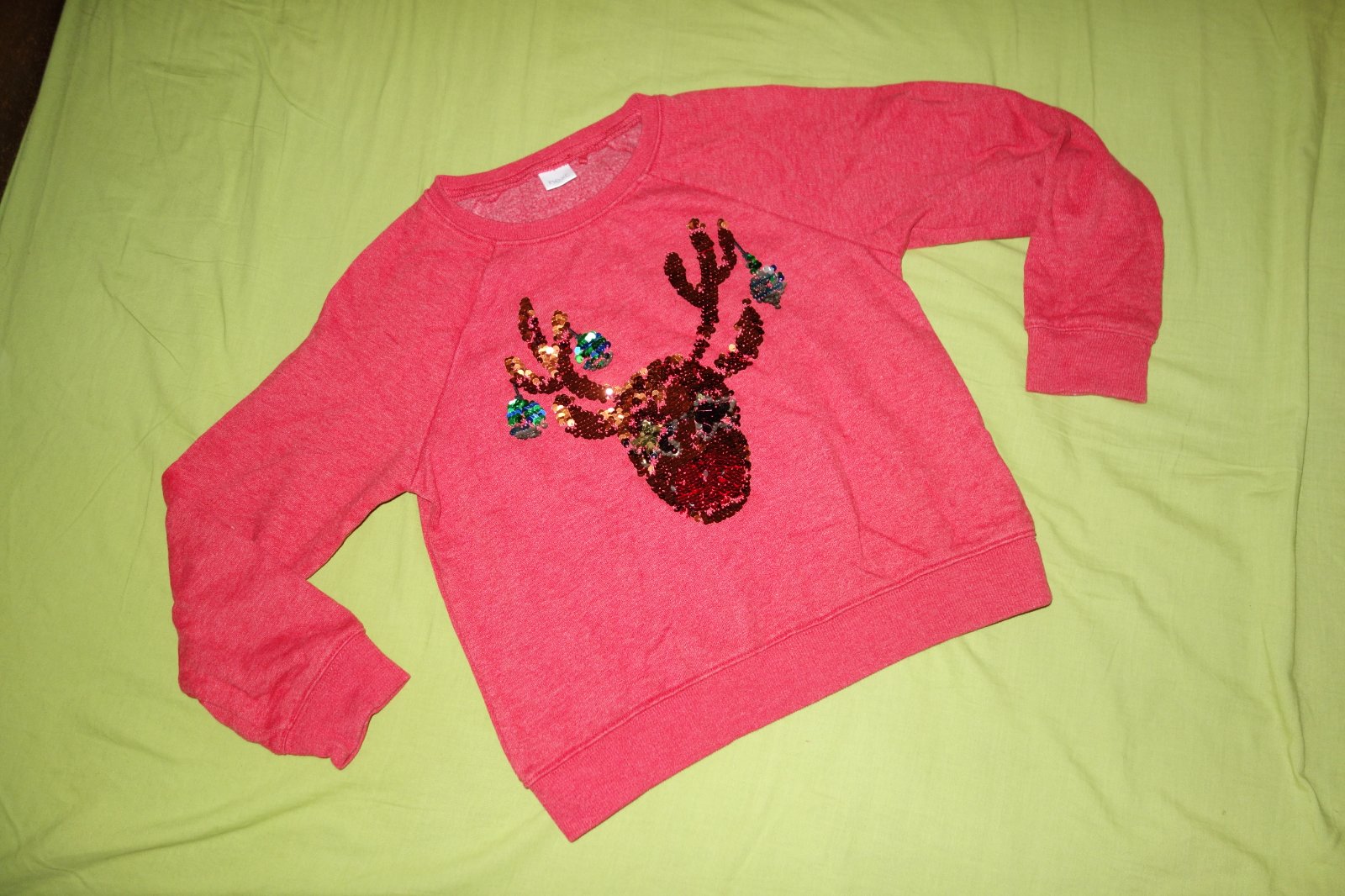 Krasna mikinka s pretacacimi flitrikmi vo vybornom stave.