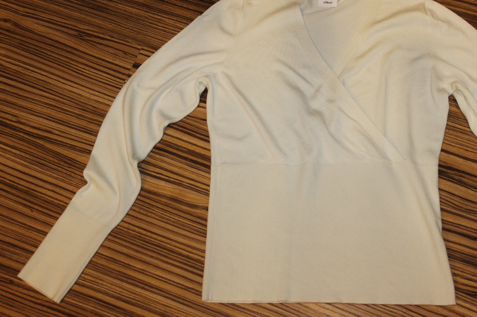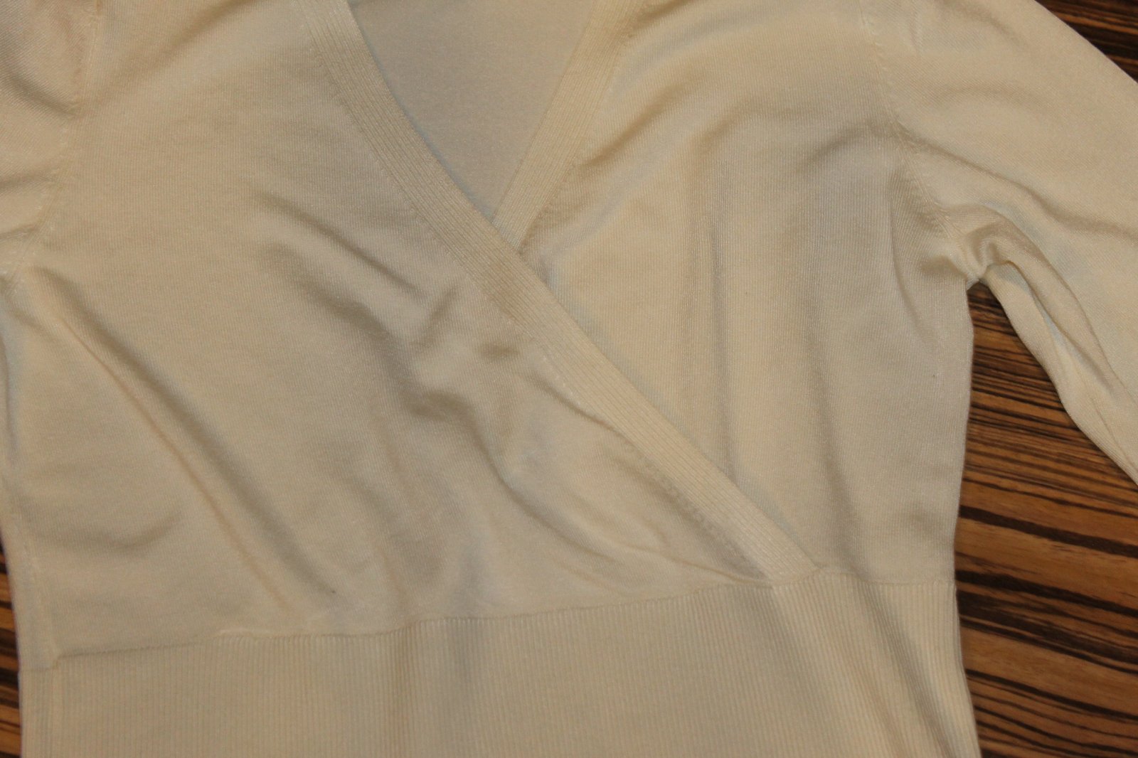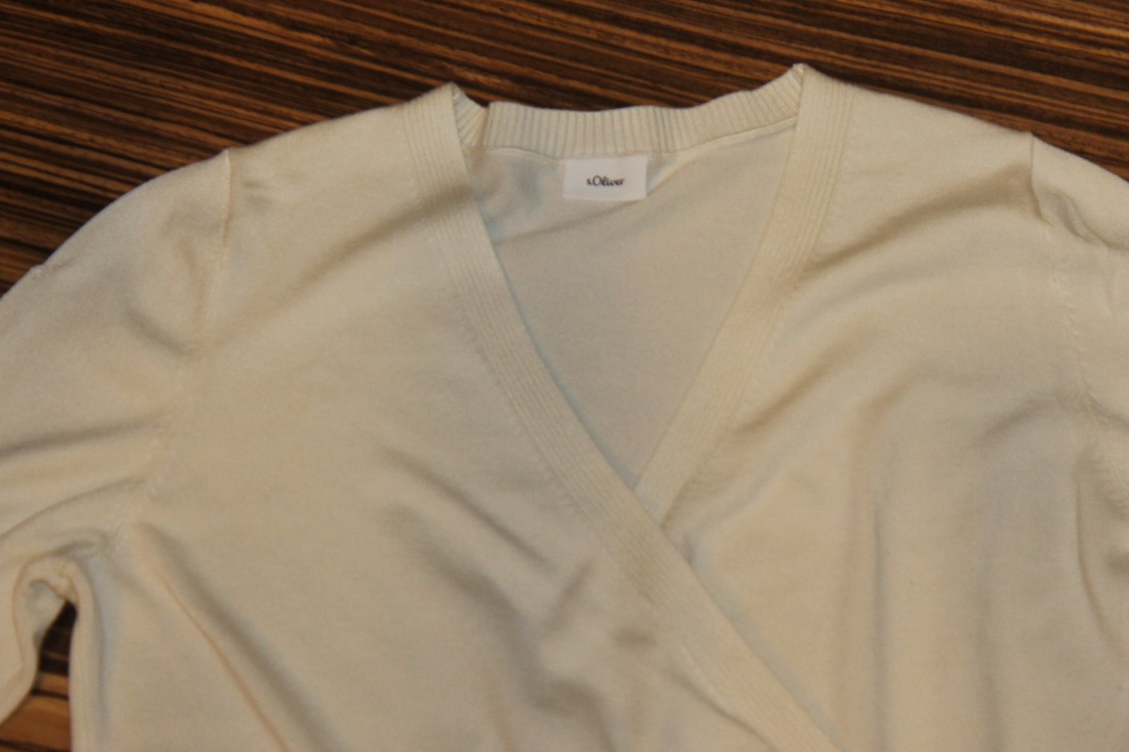 Málo nosený, V super stave, malá zašitá dierka na pravom ramene (viď detail), inak bez poškodení. Sadne aj na veľ. 36, Veľ. 34, RO: š 2x 40 cm, dl. 54 cm, rukáv od krku 68/50 cm spod pazuchy. Váha 150 g.