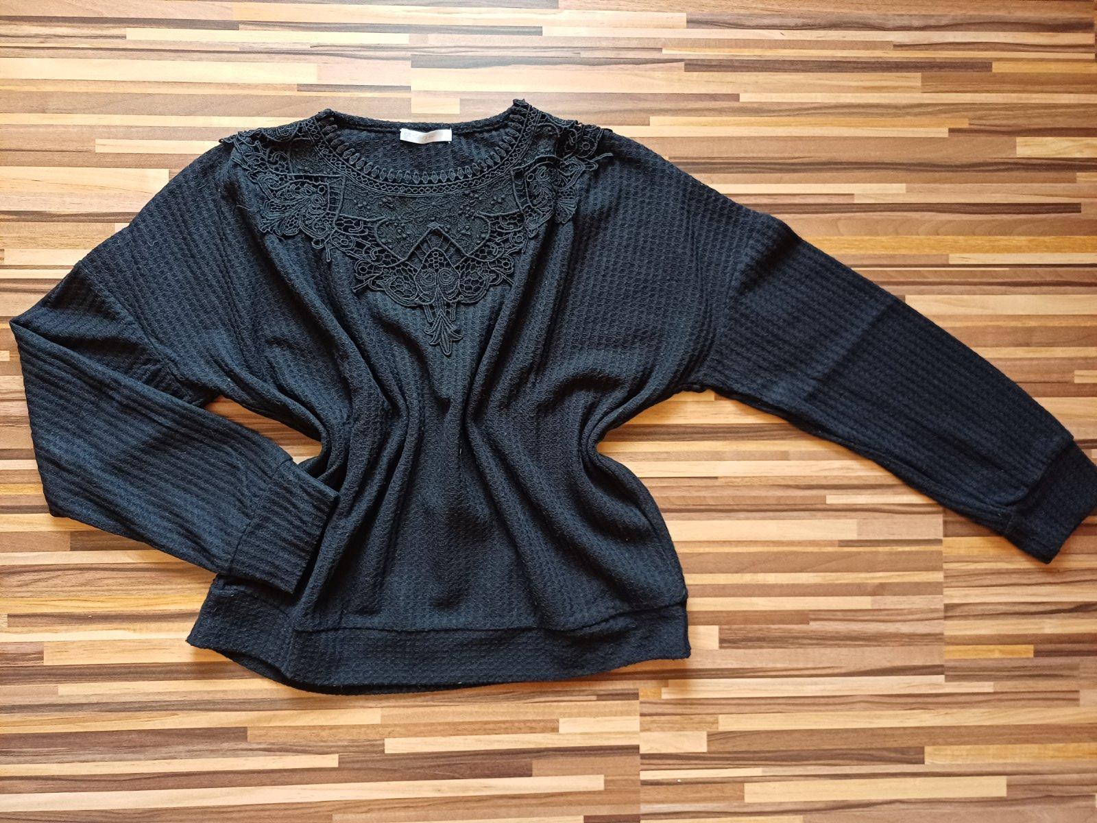 Pulóver zn. Fisherfield, veľ. L. Farba čierna, vo výstrihu čipka. Rovnaký mám aj v prírodnej bielej. Rozmery: dĺžka od ramena po spodný okraj 55 cm, dĺžka rukáva 44 cm.