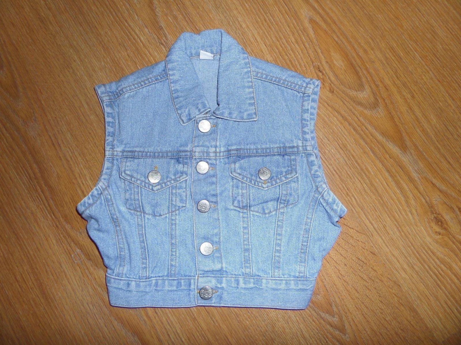 Ponúkam krásnu riflovú vestičku so zapínaním na gombičky a vzadu na zaviazanie. Značka je Mini Maxi girls a veľkosť uvedená na 2 roky, ale prikladám aj rozmery na foto. Vestička bola málo, občasne ...
