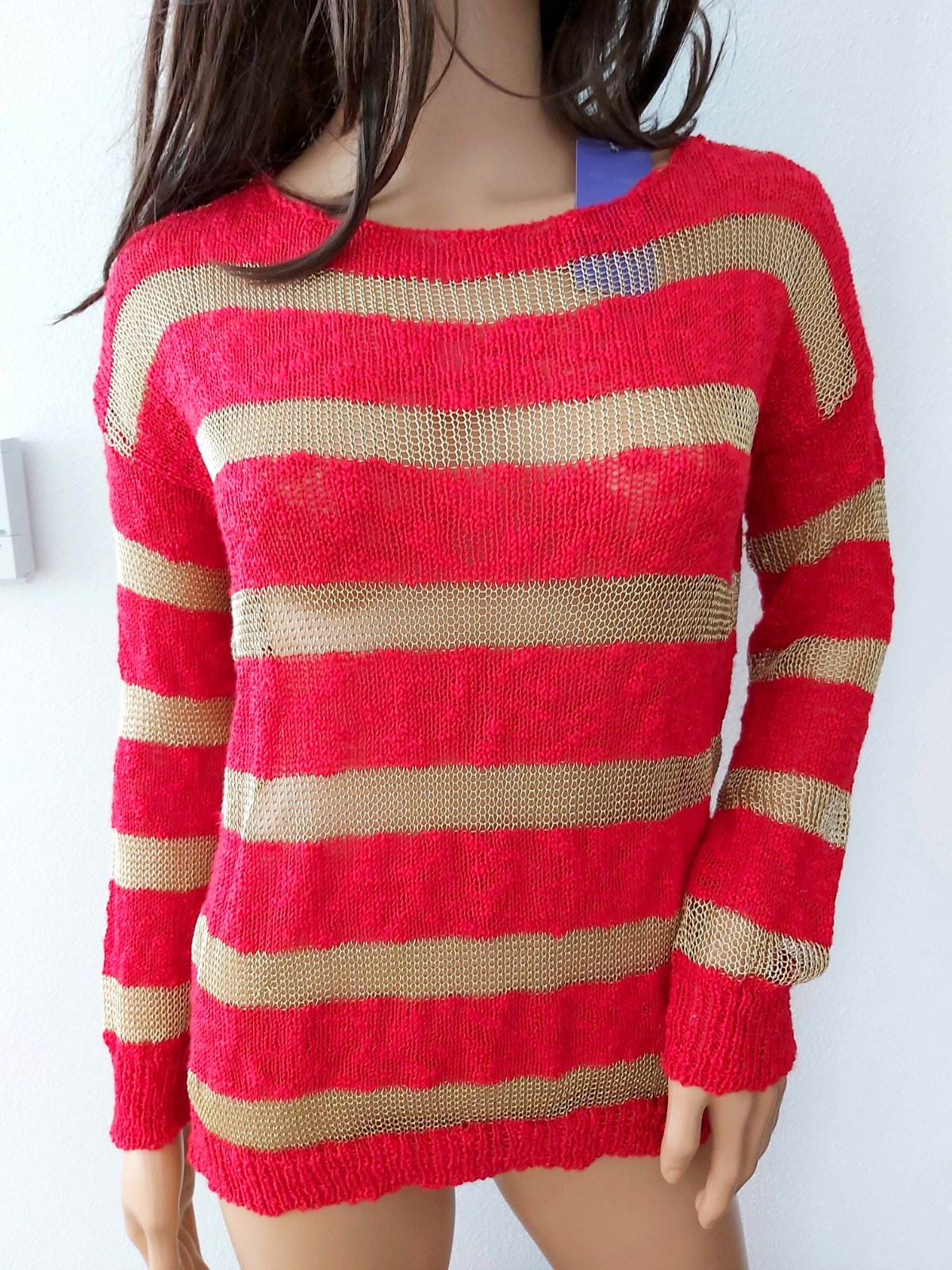Nádherný pulóvrík v červeno zlatej kombinácii. veľ. uni, sedí na 36/S, 38/M. Posledný kúsok za zníženú cenu.