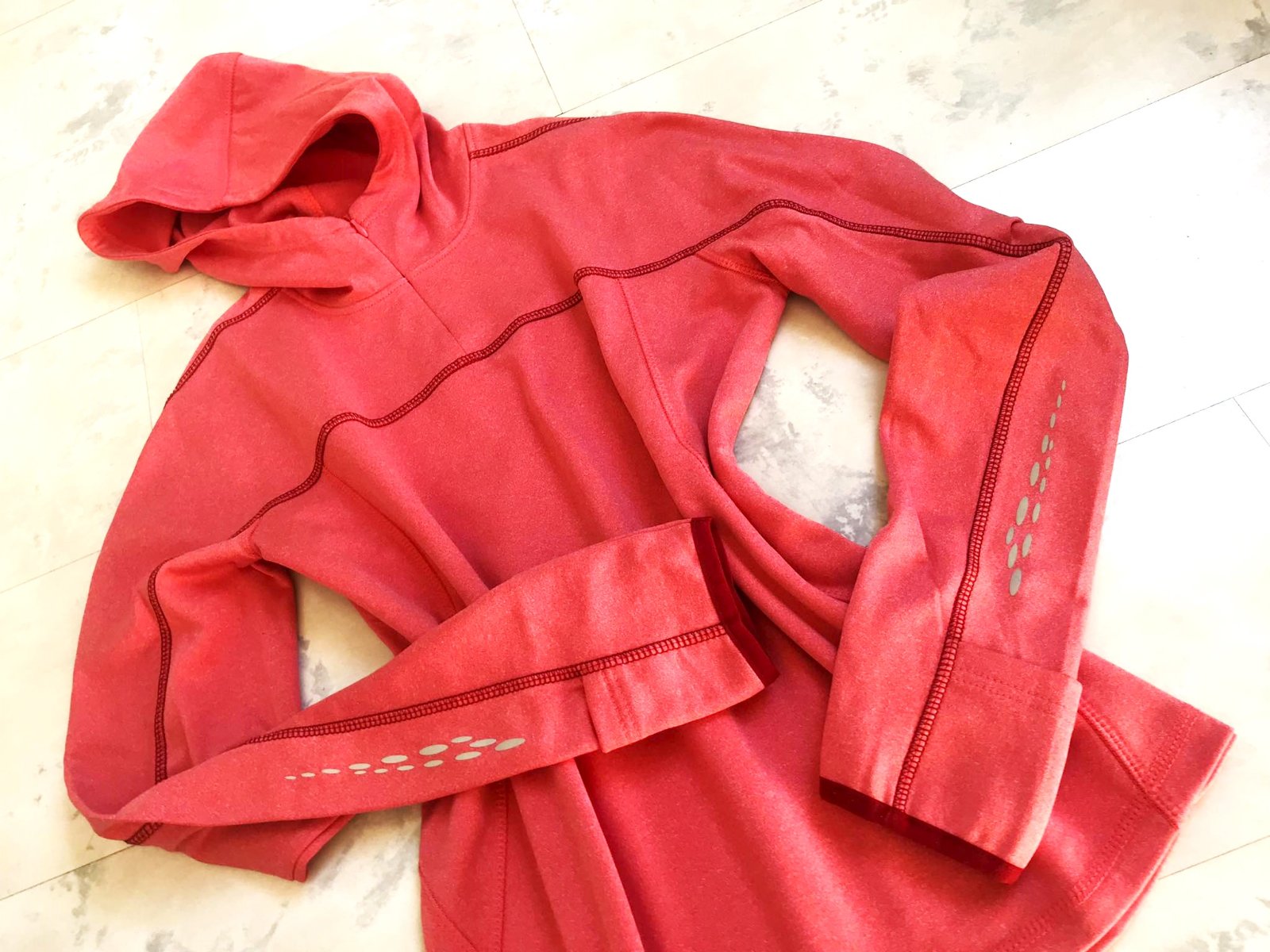 super mikina na športovanie,ako nová,veľmi kvalitná,vhodná na behanie, reflexné detaily na chrbáte i na rukávoch,na rukávoch pri konci malé kapsičky,šírka = 51 x 2 cm,dlžka = 65 cm, rukáv meraný od krku - raglánový = 78 cm