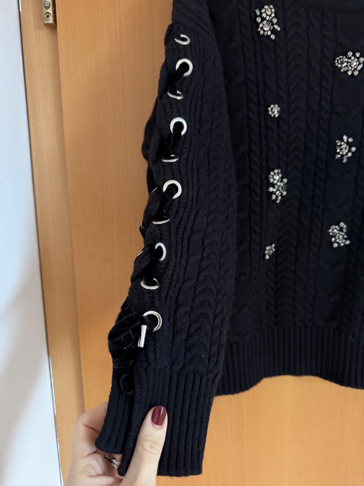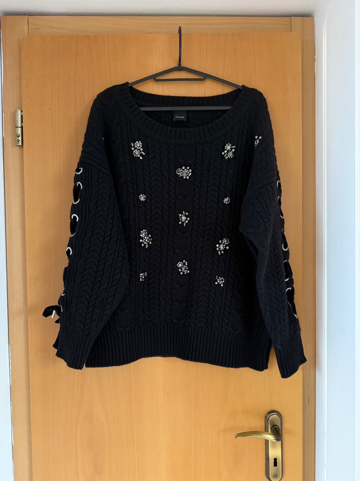 Sveter Pinko s kamienkami. Má zaujímavo riešené rukávy so šnúrkami. Veľkosť M. Pôvodná cena bola okolo 300€. Párkrát oblečený.