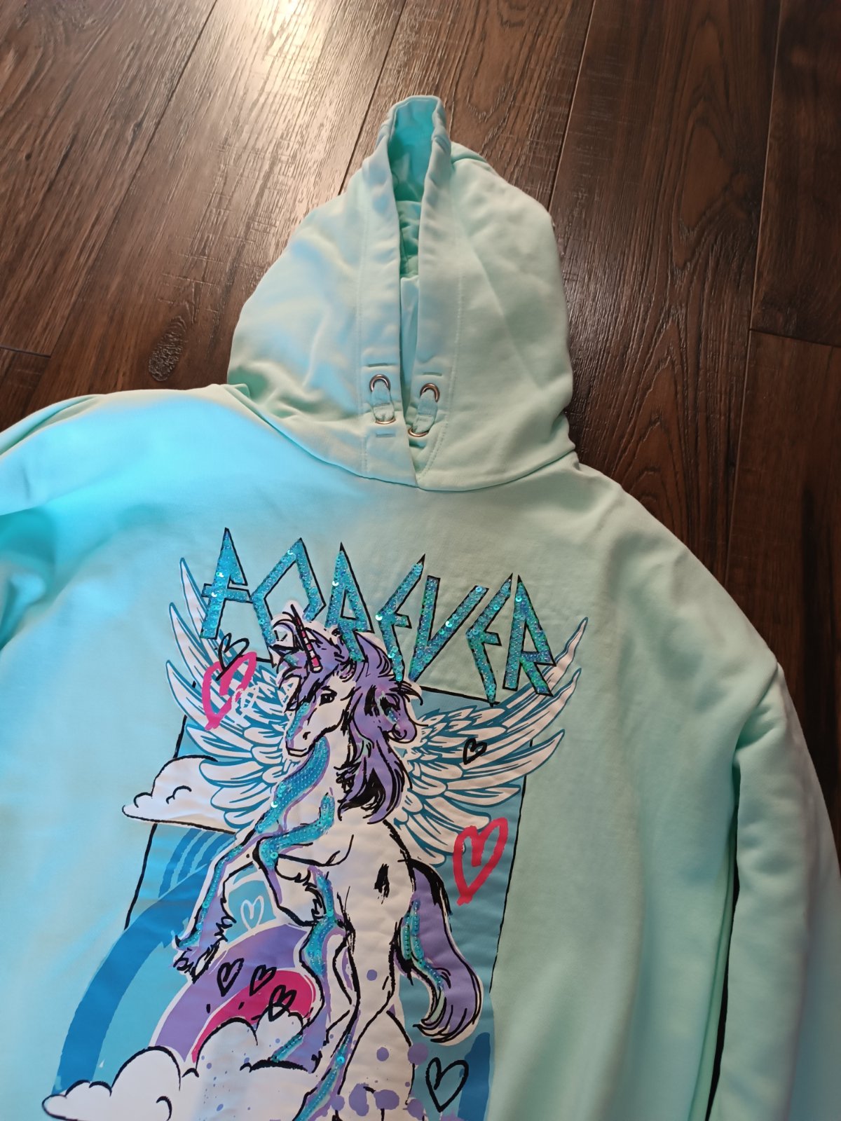 Krásna farba, mikina v super stave, bez vád. Obvod pod pazuchami 90 cm, celková dĺžka 64 cm.