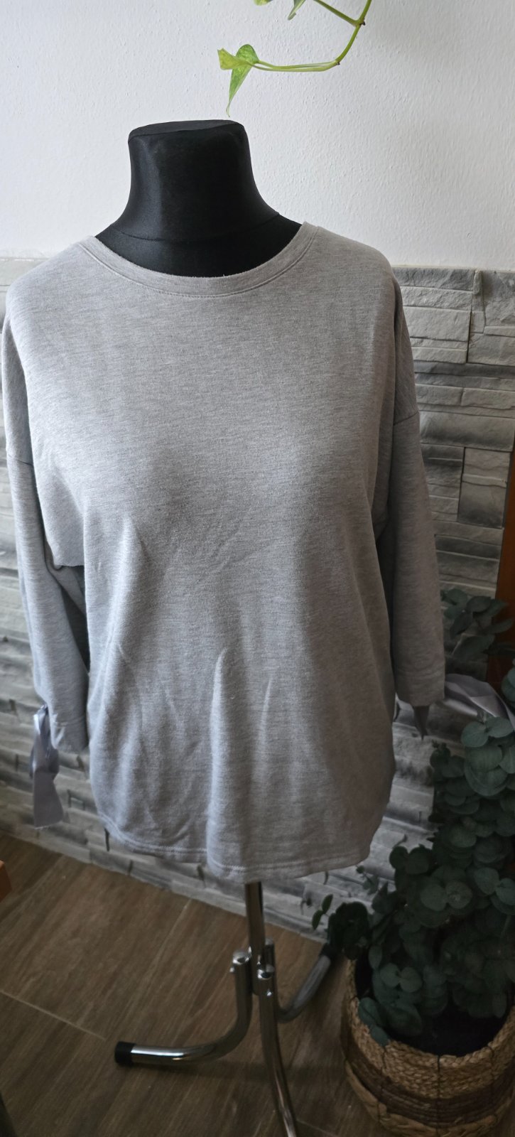 dámska bielo sivá mikina s tenkou tmavo sivou kapucňou, sivé lemovanie, príjemný kvalitný materiál, zloženie: 60 % bavlna, 40 % polyester, stav: výborný, málo nosený, značka: Bonprix, uvádzaná veľk...
