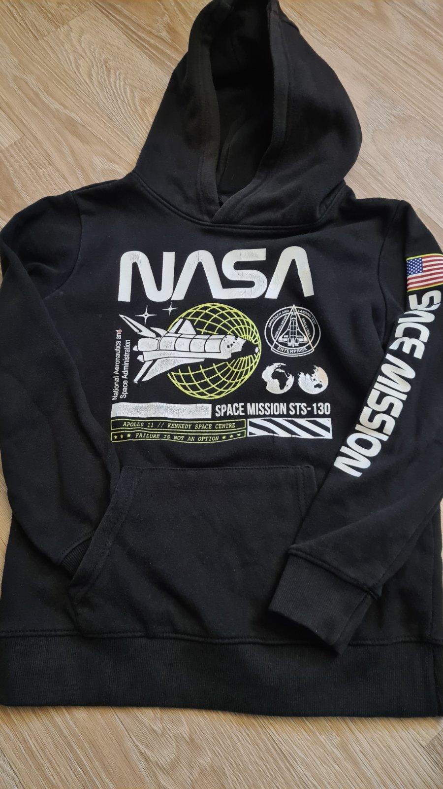 Mikina s bežným opotrebením. Dole je menší nevýrazný fliacik na pravom vrecku. Cena plus poštovné