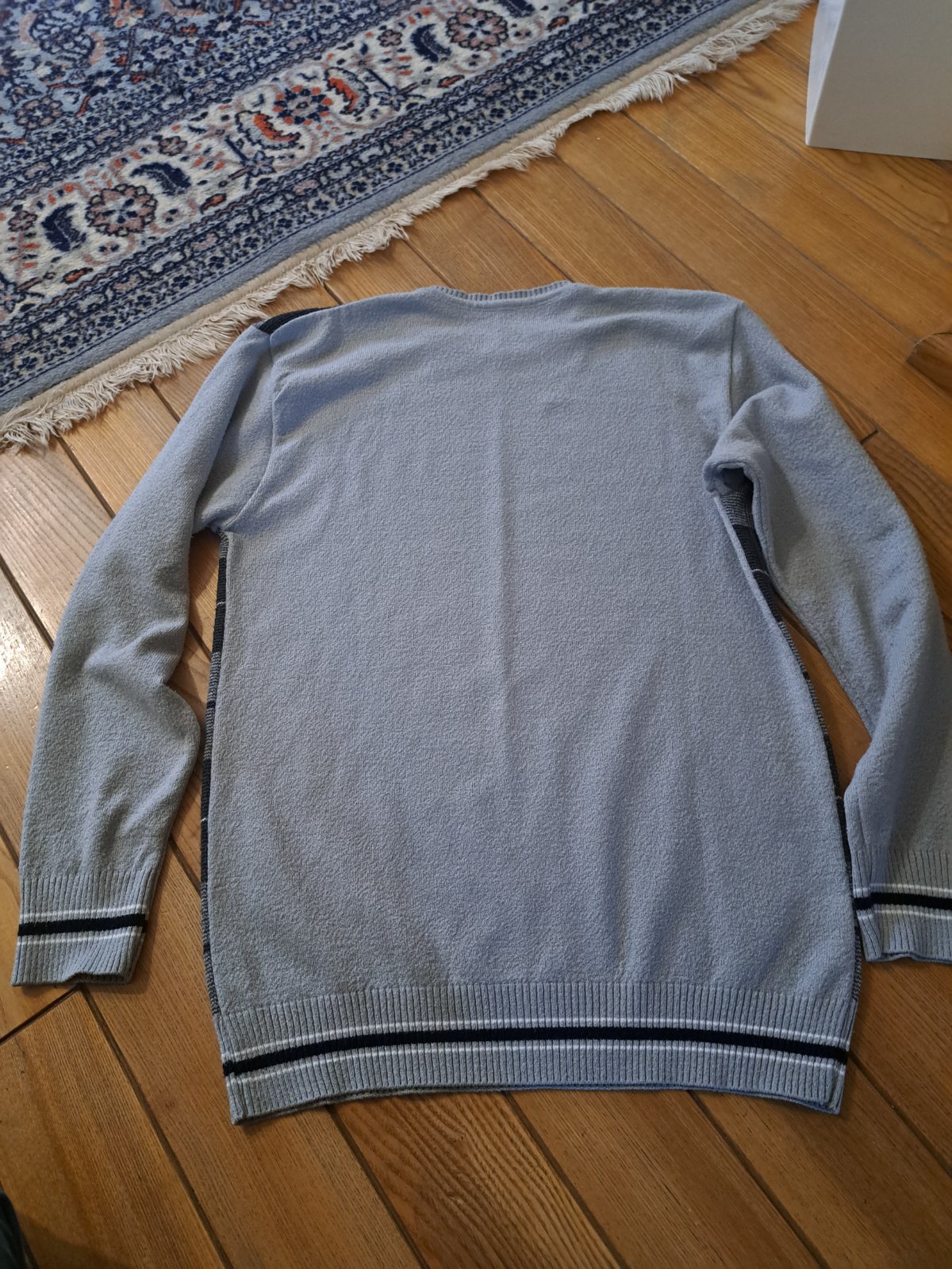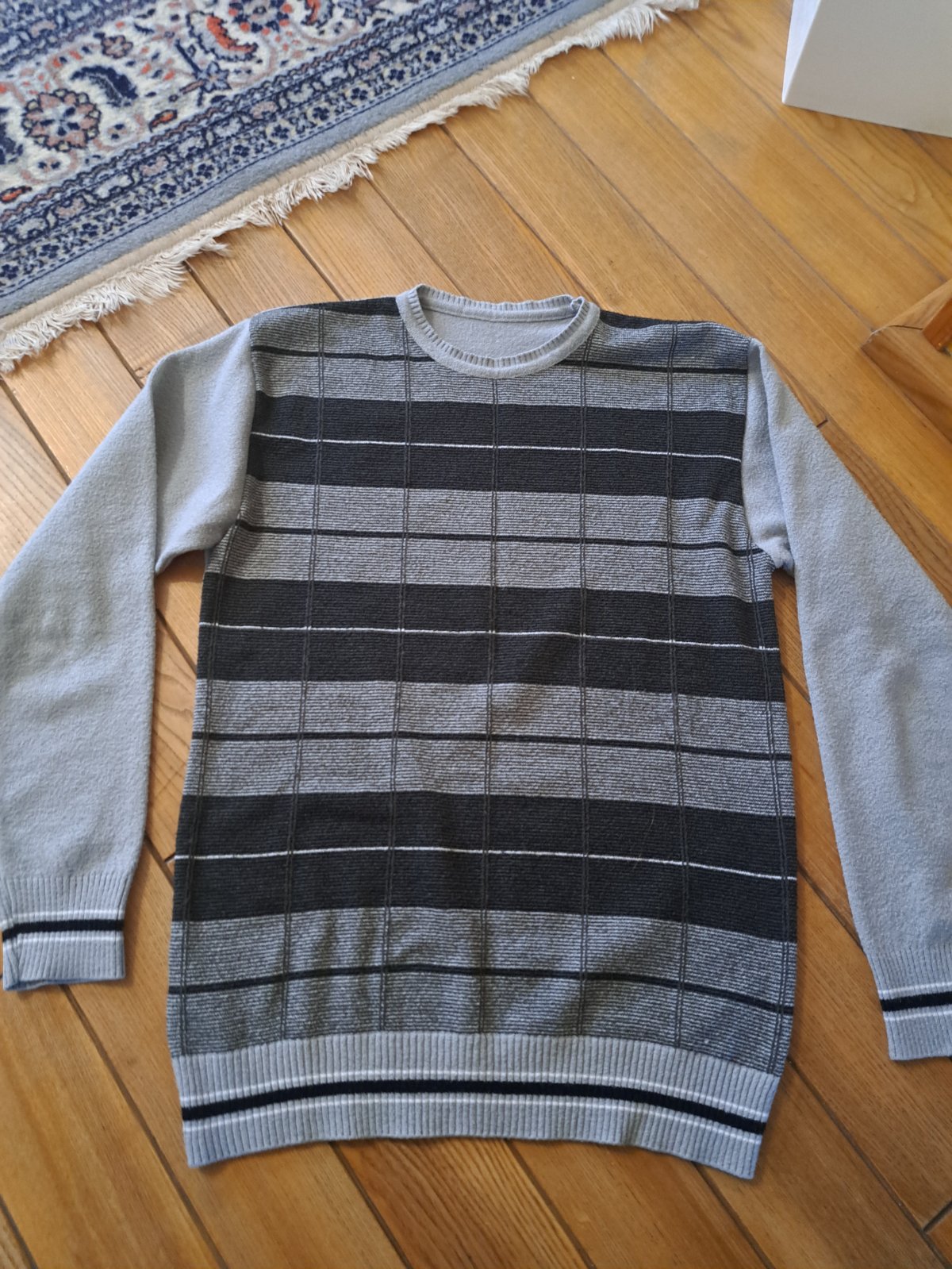 Tenší pulover pre chlapca. Veľkosť nepíše. Šírka pod pazuchami 47cm, dĺžka 64cm.