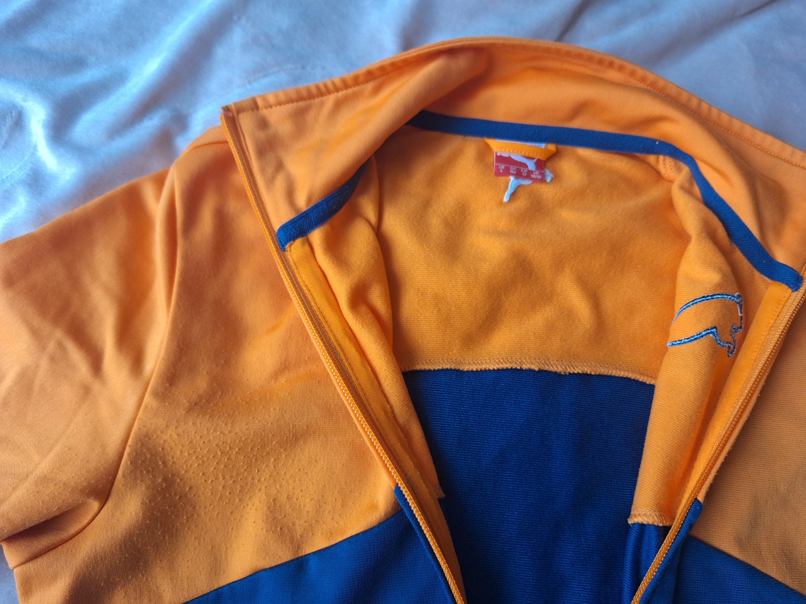 Predám veľmi peknú mikinu veľ 152, z lahkeho športového materialu, nemá žiadne fľaky, na hrudi a na chrbáte nad pásom ma trosku vysuchane zmolky od ruksaku. Nie je deravá, len sa obsuchanin urobili zmolky - vid foto. je veľmi pekná veselá, farebna. Rozmery sú od ramena po spodok 59cm, šírka cez hrudnik .46cm