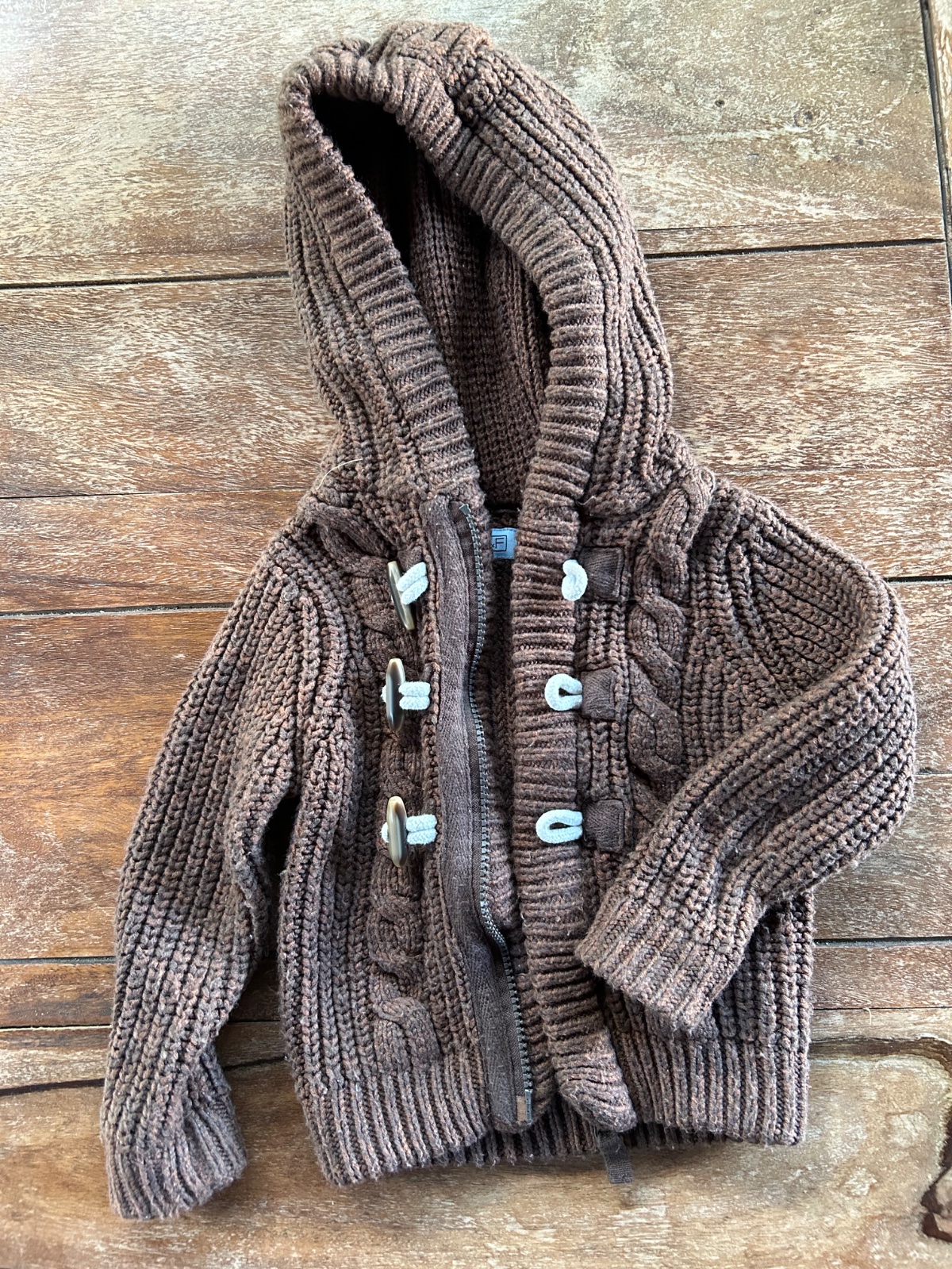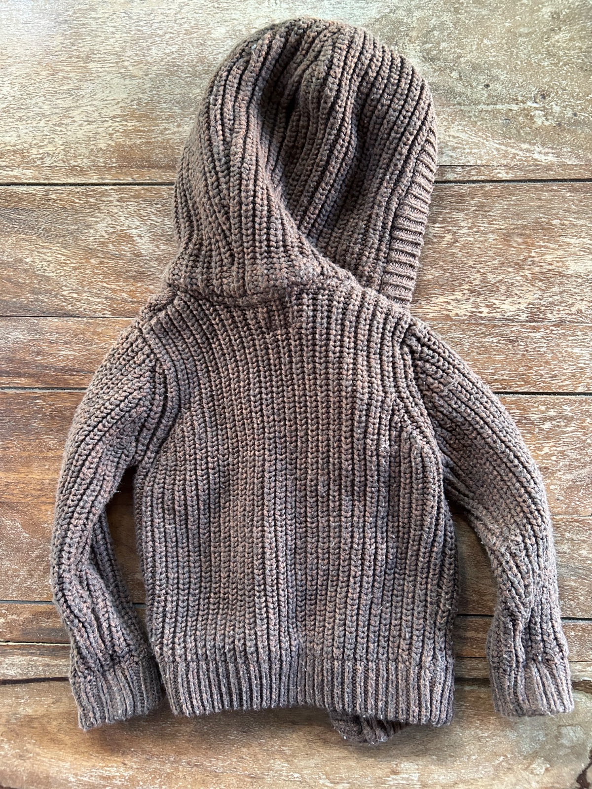 Krásny hnedý hrejivý svetrík v peknom nosenom stave. Bez vád, zips je v poriadku. Má trošku žmolky. Na požiadanie môžem odžmolkovať.