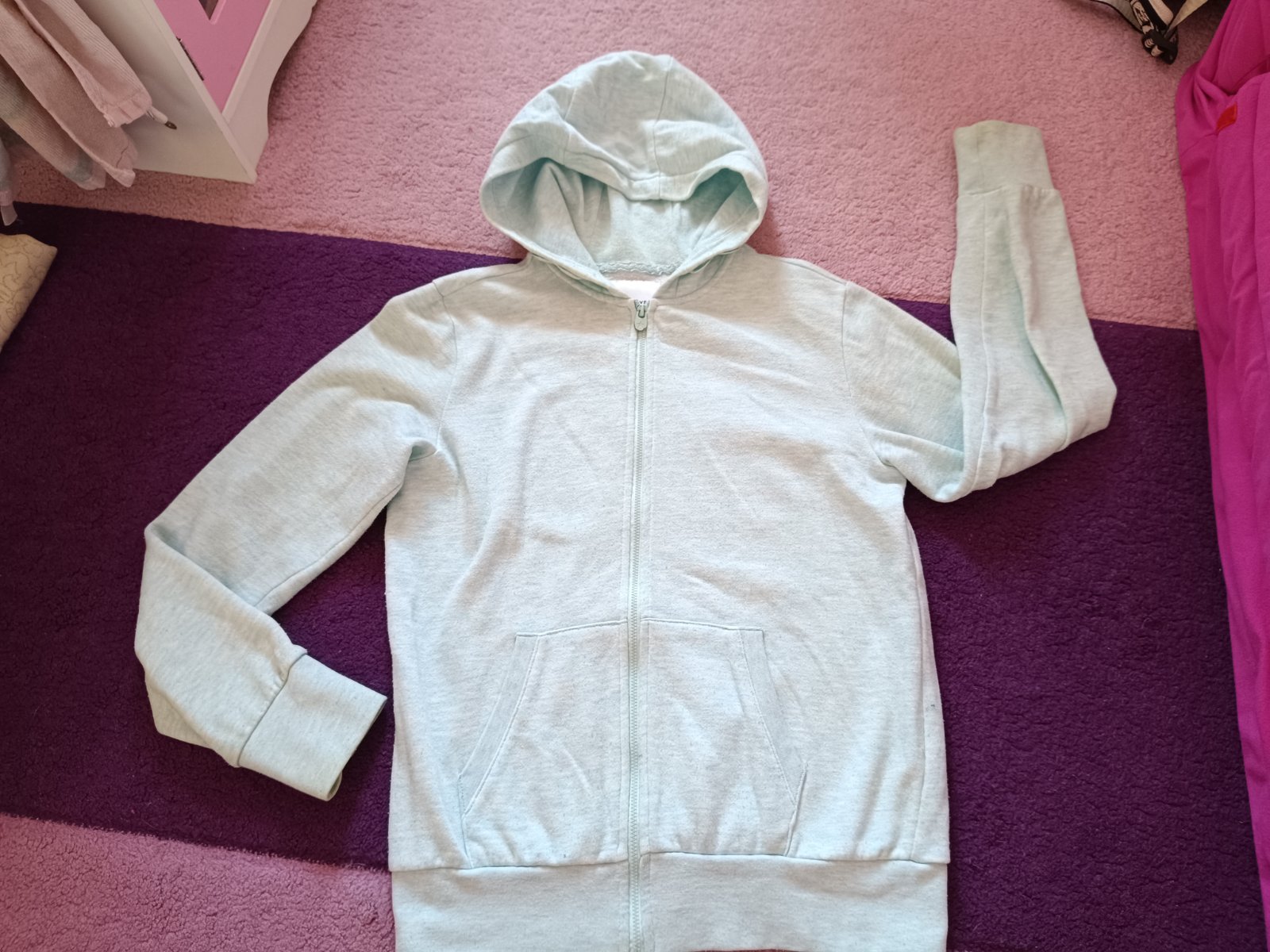 Krásna mikina v svetlomodrej pastelovej farbe v top stave Veľkosť 164 na 13/14 rokov značka Reserved dlžka 56 cm šírka 2x 45 cm rukáv od ramena 60 cm