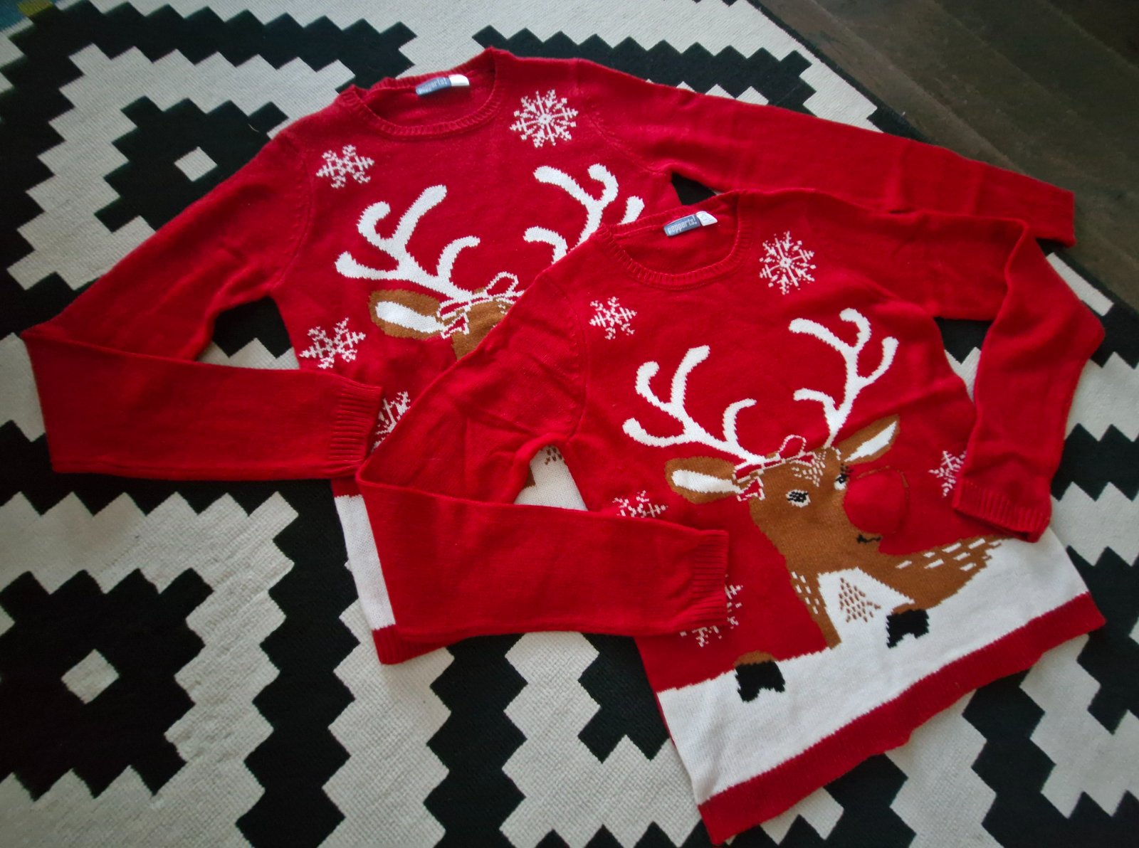 Krasnde pulovriky,sobom svietili nosi,no uz nesvietia,asi treba vymenit baterku..cena LEN 7eur/ks,pri odbere spolu zlava 2eur vo vyske obyc posty.