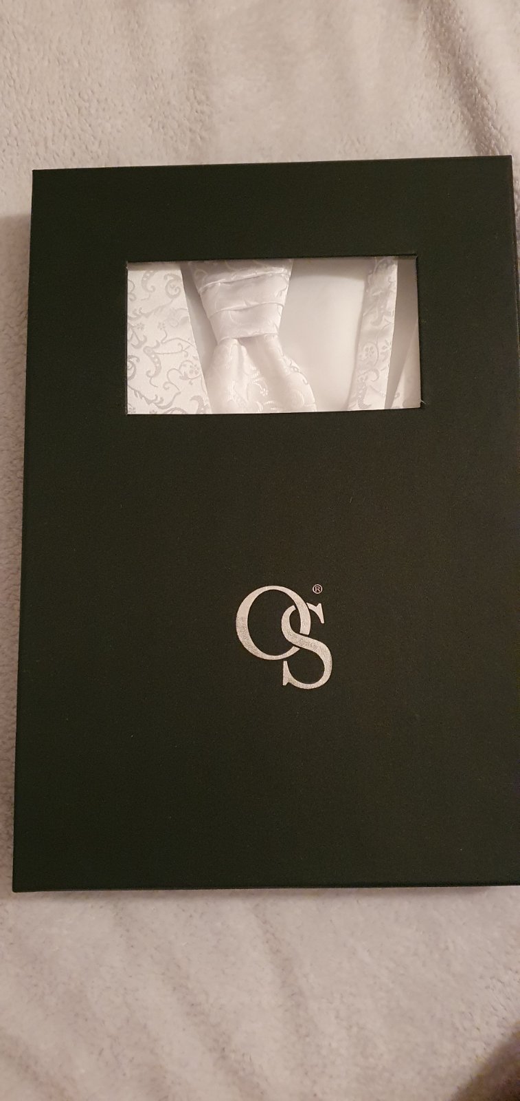 Krásna, kvalitná svadobná vesta spolu s kravatou, obrúskom a 2 ks svadobnymi podbradníkmi. Vľkosť sedí na M/L, podľa postavy, viď rozmery. Slovenský výrobok. Pôvodná cena cez 50 eur.