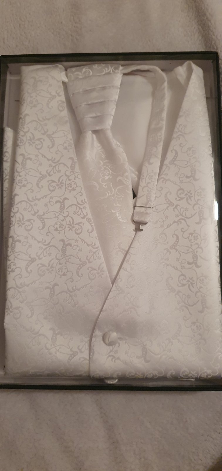 Predam pansku svadobnu vestu s kravatou bielej farby. Je leskla.V skutocnosti krajsia ,ako na fotkach.Nedalo sa to nafotit koli lesku. Sedi na postavu M. V pripade zaujmu premeriam. Cena 15€ plus p...