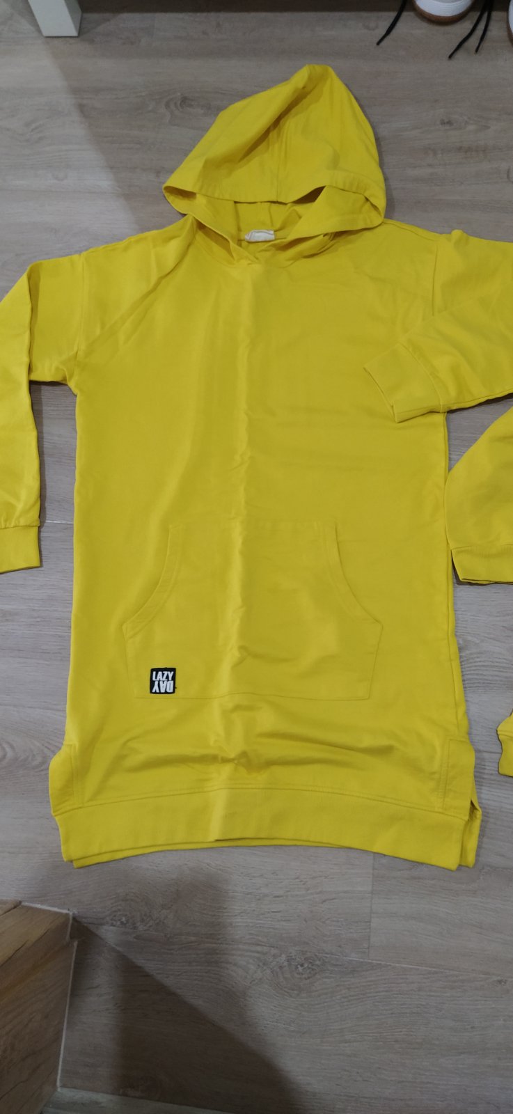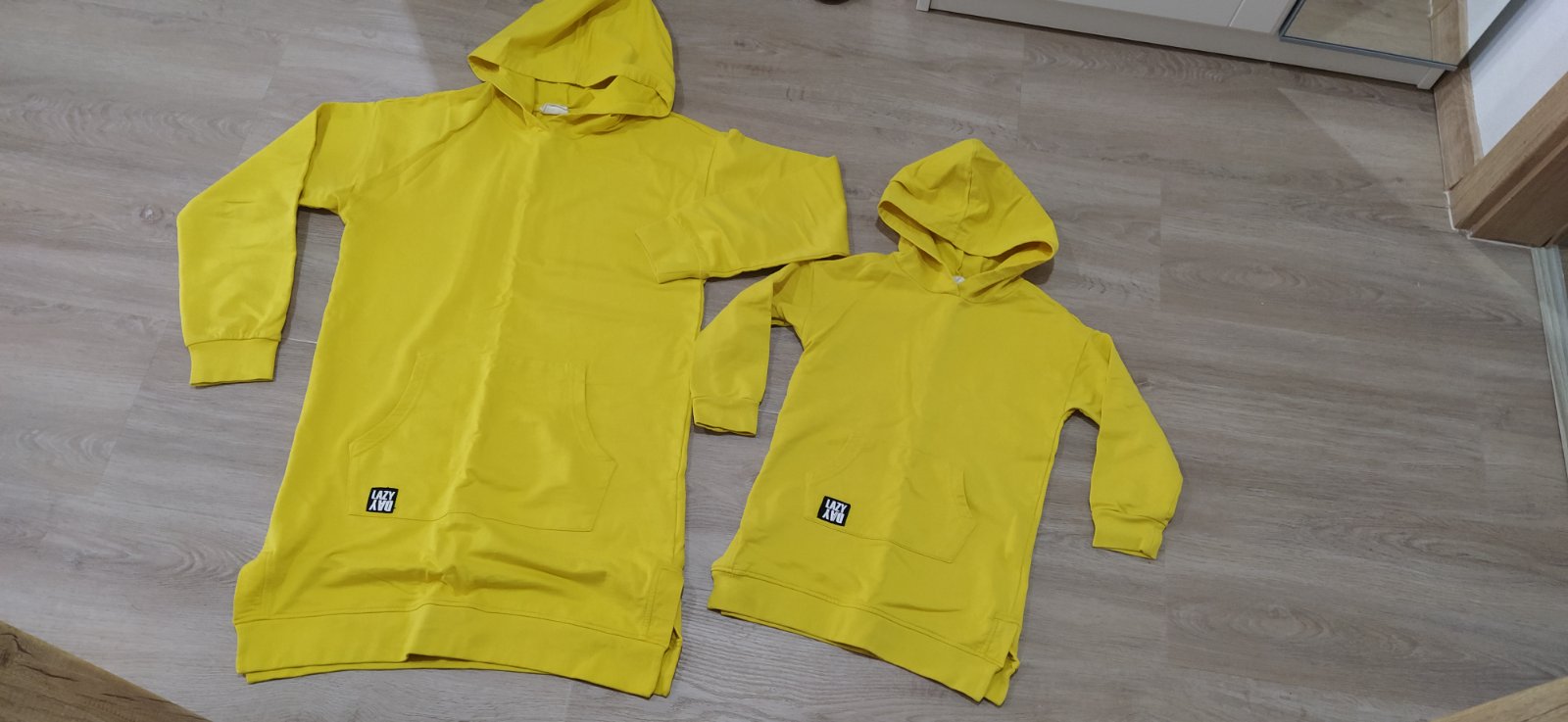 Bez poškodenia. Cena spolu. Veľká predĺžená mikina veľkosť 164 - sedi ako veľkosť S, detska mikina je veľkosť 110.