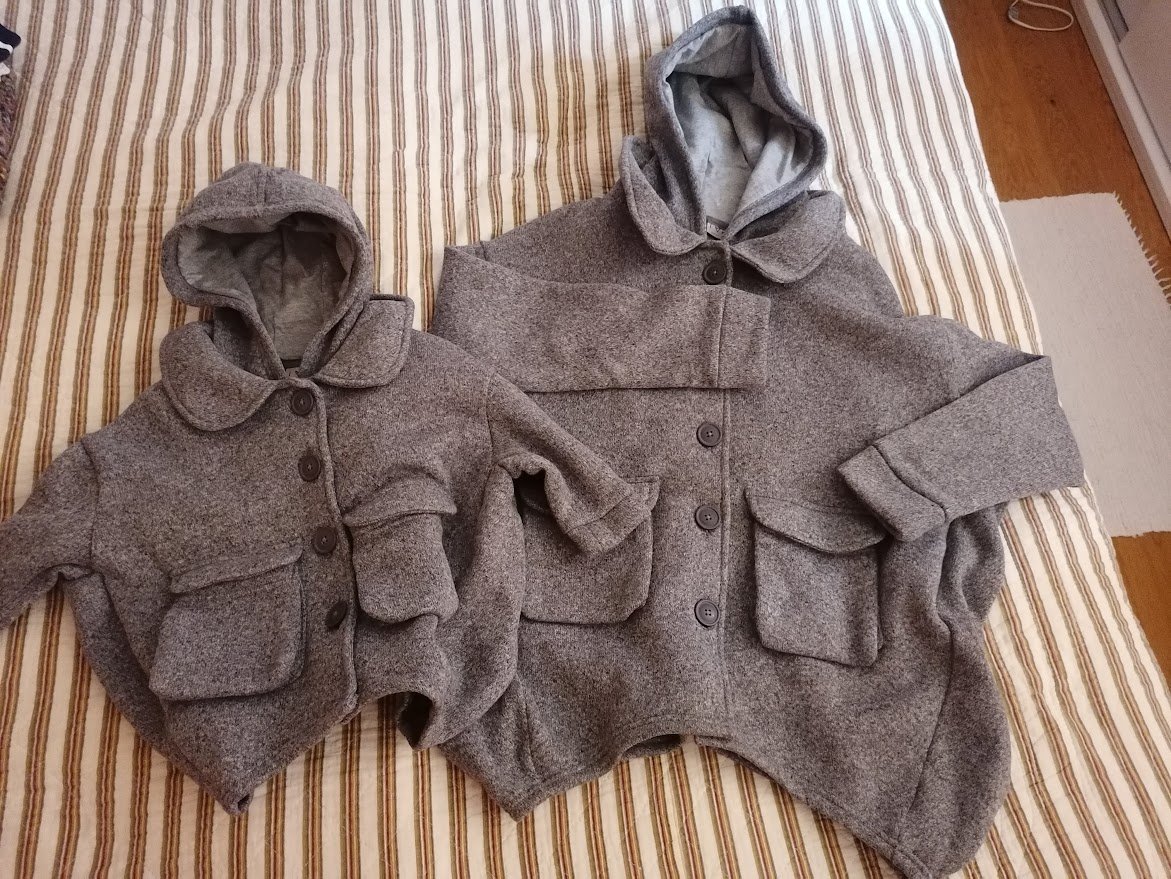 nádherný set mama a dcéra. sú to akoby kabátiky ale z pružnej teplej látky - v podstate nieco ako mikina. Oblečené asi 2x, dcerka vyrastla. nie je to ani prané. super stav.