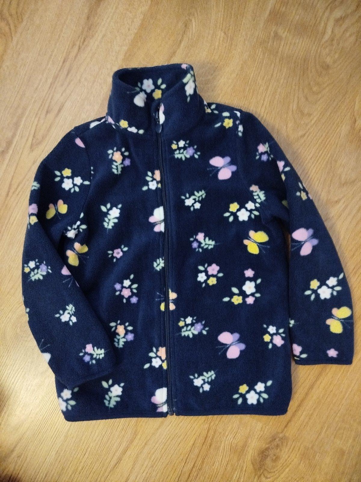 Modrá až fialovo modrá bavlnená mikina s motýlmi a guličkami. Veľmi pekná nežná, dievčenská. Má nariasené rukávy, krásne ukáže, krásne sedí