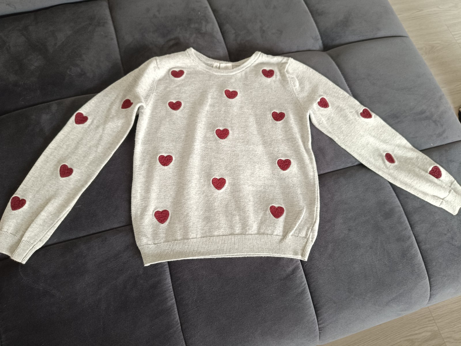 Veľkosť 134/140. V strede flitrované srdiečko.