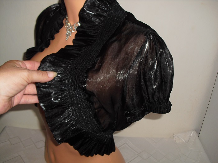 predam nadherne cierne bolerko, priesvitne, lahucky material, zdobene maslickou, velkost ide univerzalne na s/m. je dobrom stave, paradu niekomu este urobi.