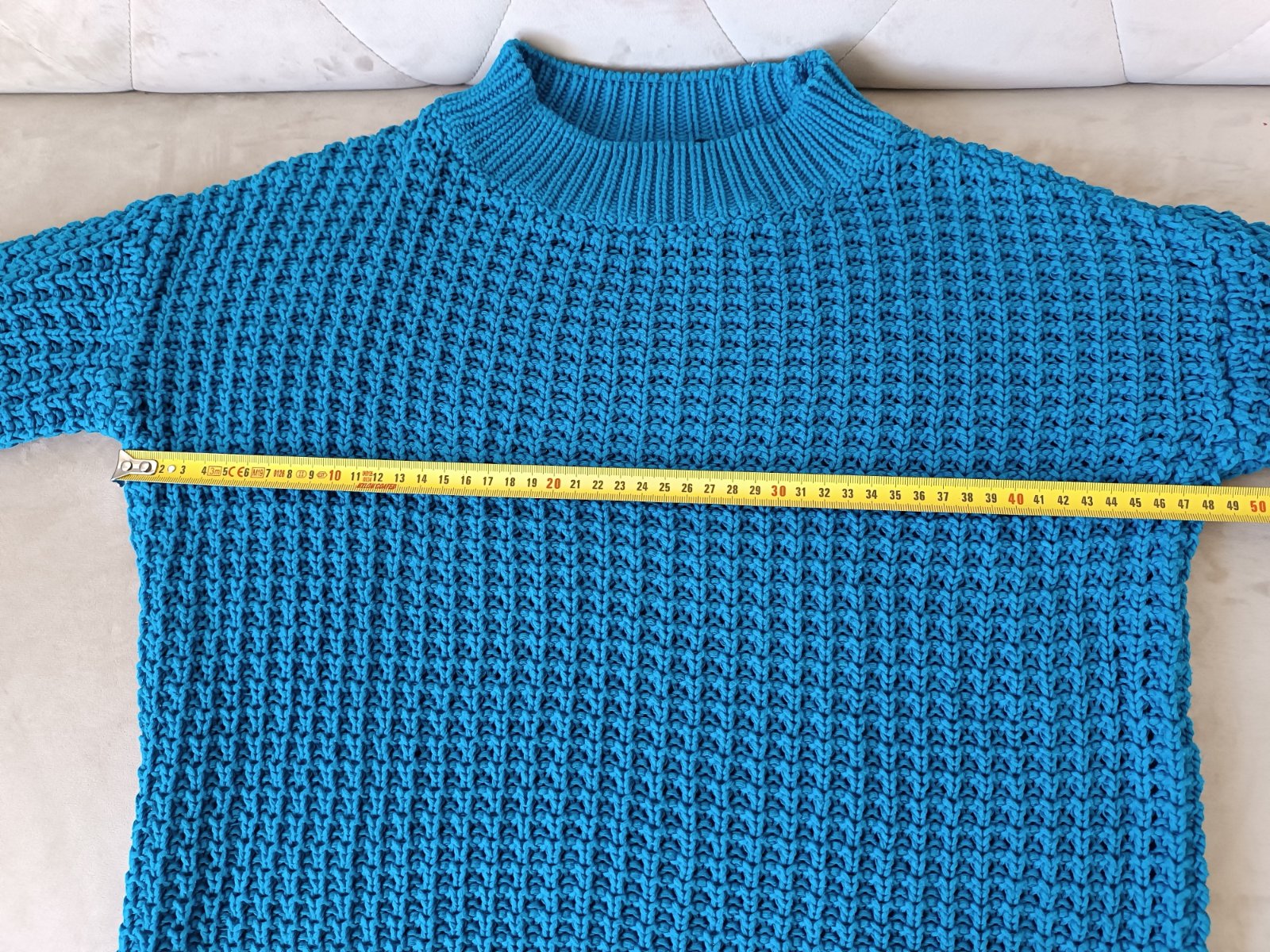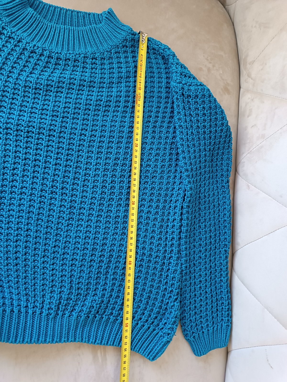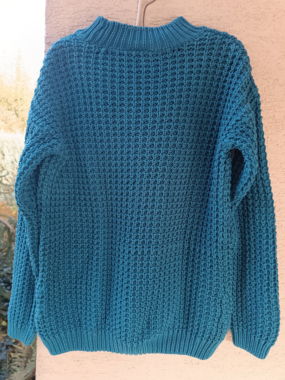 Pulóver takmer nenoseny, pekný , príjemný, pomeraný, veľkosť sa mi zdá skôr M.