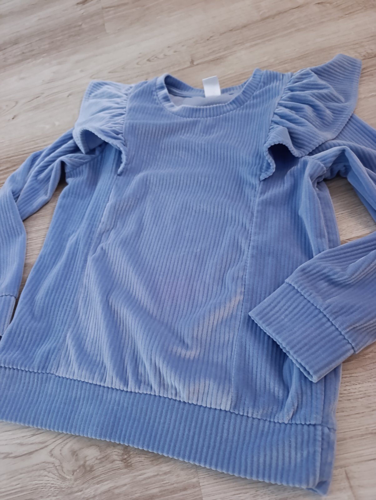 1x oblečená pekná mikina s volánmi, top stav, príjemný materiál.