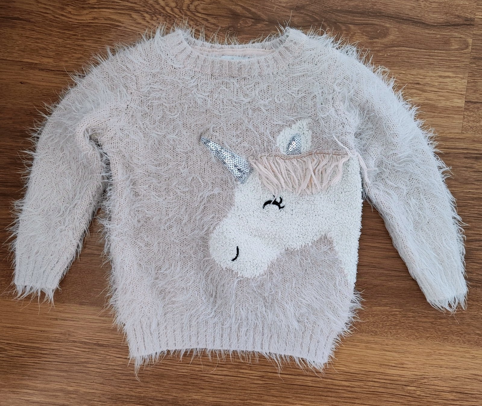 Predám veľmi pekný svetrík UNICORN, veľk. 98 cm, na 2-3 roky. Patenty pretkávané striebornou niťou, korunka na koníkovi je s glitrami. Nosili sme len príležitostne - takže TOP STAV Rozmery: dĺžk...
