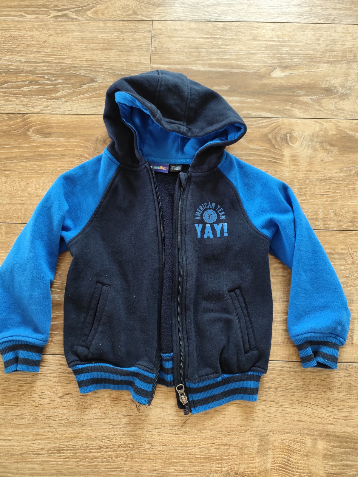 Mikina so zapínaním a s kapucou značky Lupilu veľkosti 110/116.