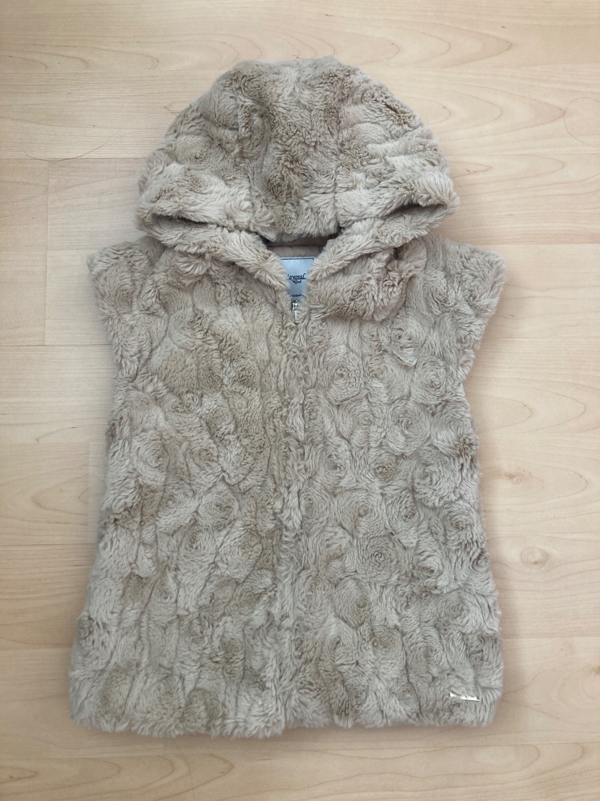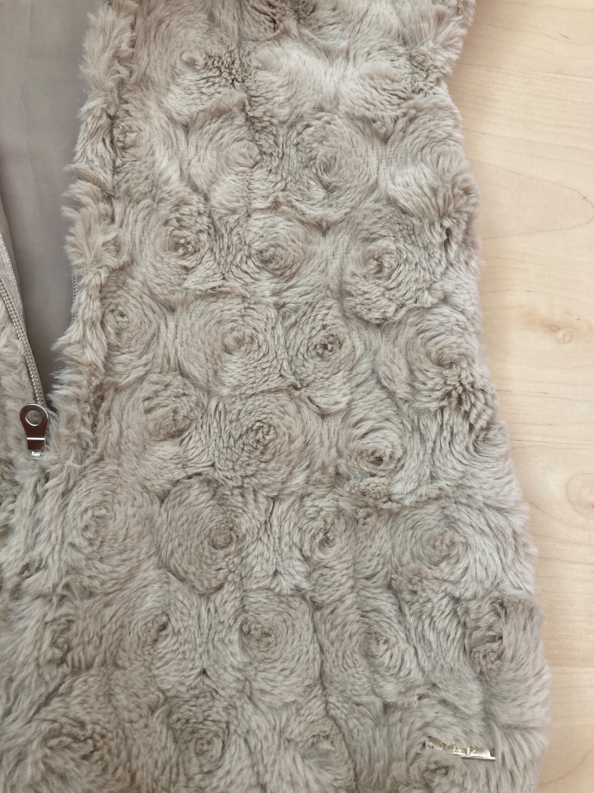 Krasna a jemná kozusinkova vesta, zapínanie na zips ten tam bol krajcirkou dorabany nakolko povodne tam bol len háčik a ten sa odopinal.