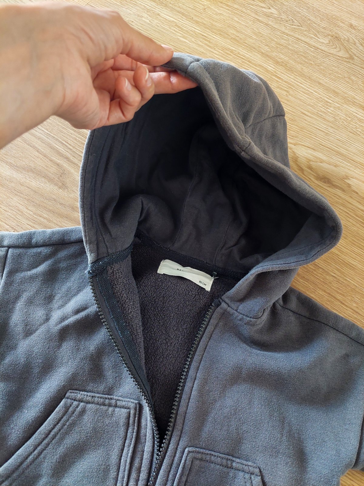Stylova mikinka, velmi pohodlna s velkou kapucnou. Syncek nosil do 2r. vdaka oversize stylu. V skvelom stave, odporucam.