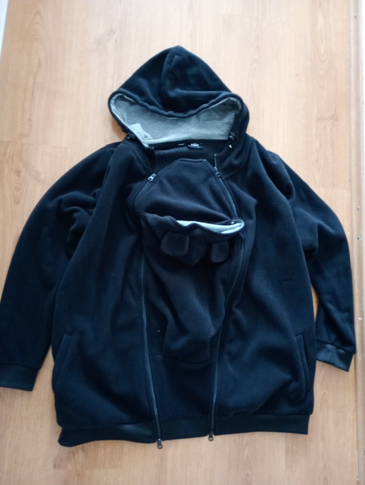 Krásna a praktická fleacova mikina, tehotenska a zaroven aj vložka na bábätk, ked nosite v nosiči. Vložka sa dá odzipsovat a mate v tehotensktev Veľkosť L, PC 54€