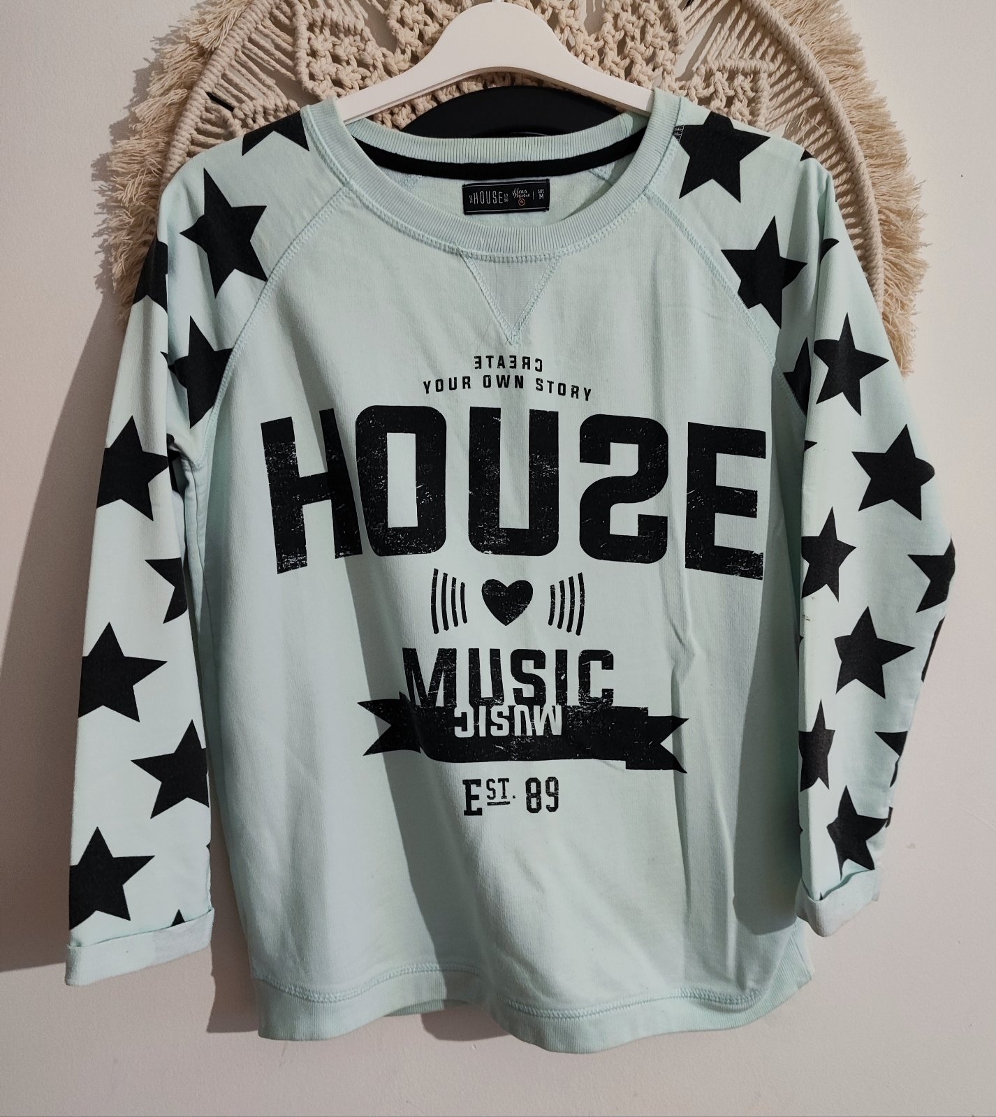 Predám používanú mikinu zn. House, veľ. M, mätová farba, , má minizmolky, bude treba odžmolkovať. Davam symbolicky.