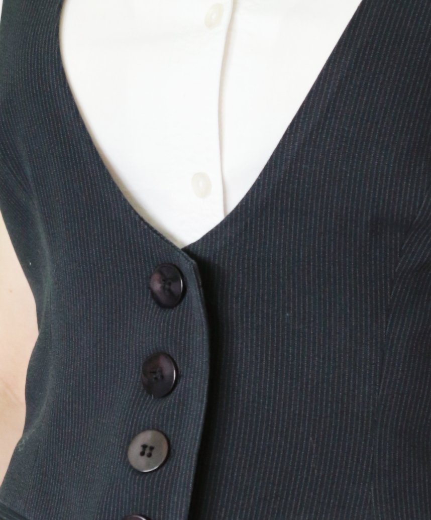 Antracitová až čierna vestička zn. CMP s tenkým hustým vlasovým prúžkom, vypodšívkovaná, vzadu dragún na utiahnutie. Skvalý stav ako nová. Materiál: 68% polyester, 27% viskóza, 5% elastan. Rozmery rada zašlem. Odoslanie poštou, Balíkoboxom alebo Packetou, cenu za odoslanie napíšem vopred.