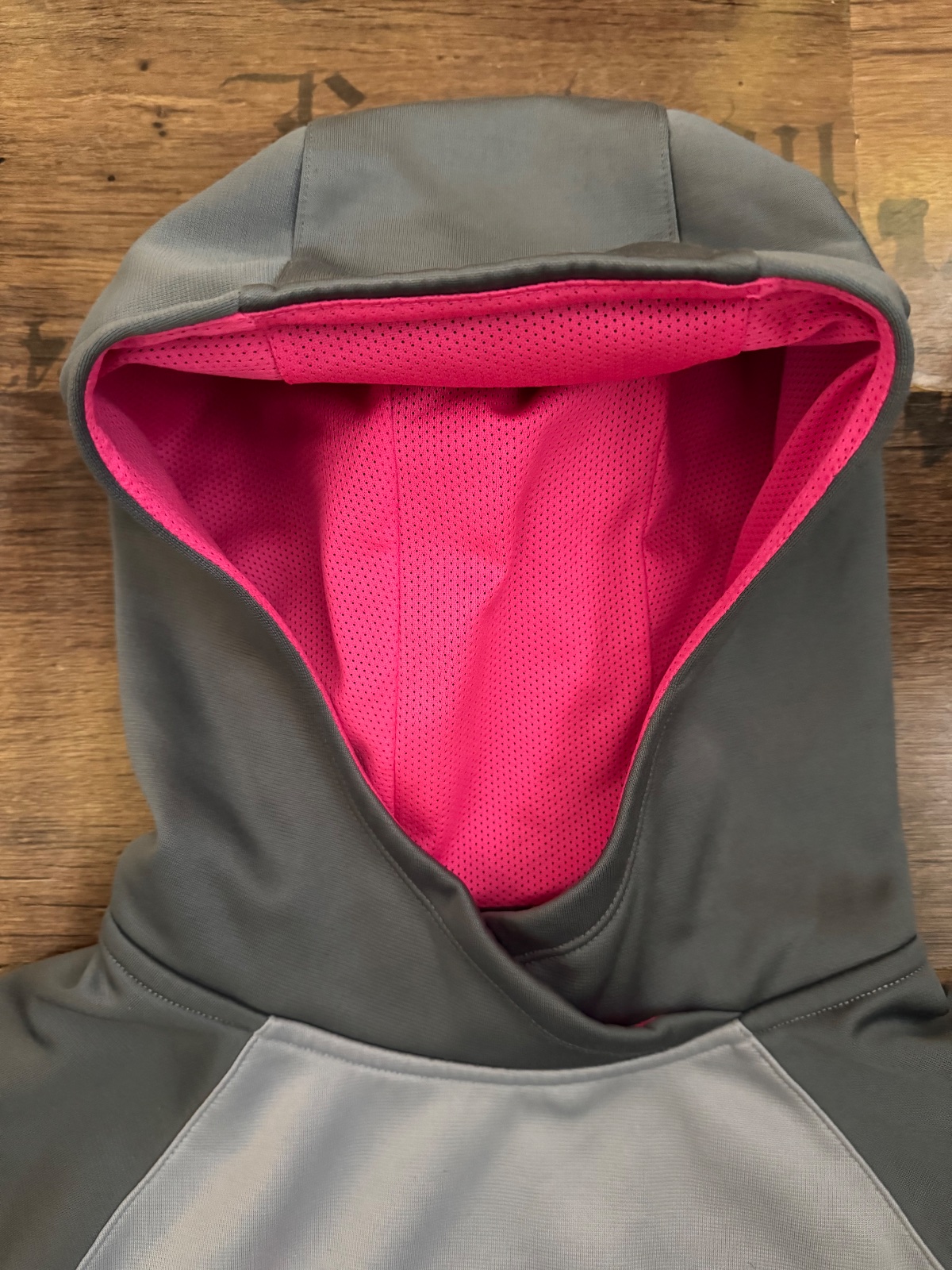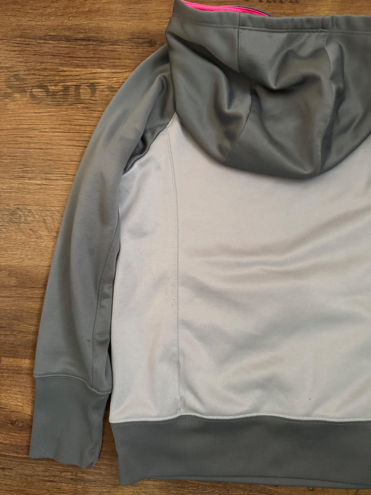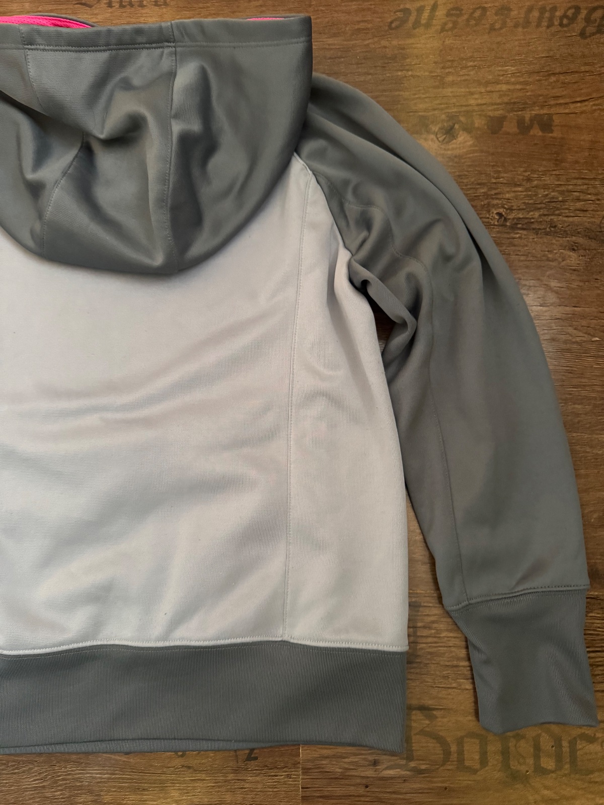 Ponúkam peknú mikinu s kapucňou originál značky Nike. Farba je taká sivostrieborná s tmavosivou a s ružovou. Veľkosť je uvedená detská L na 12-13 rokov, na 146-156 cm, no prikladám aj rozmery. Bola nosená, bežné známky, stav. viď. foto, vpredu jemné fliačky, no naďalej v peknom stave. Je teplučká Therma-fit. Poštovné podľa taríf.