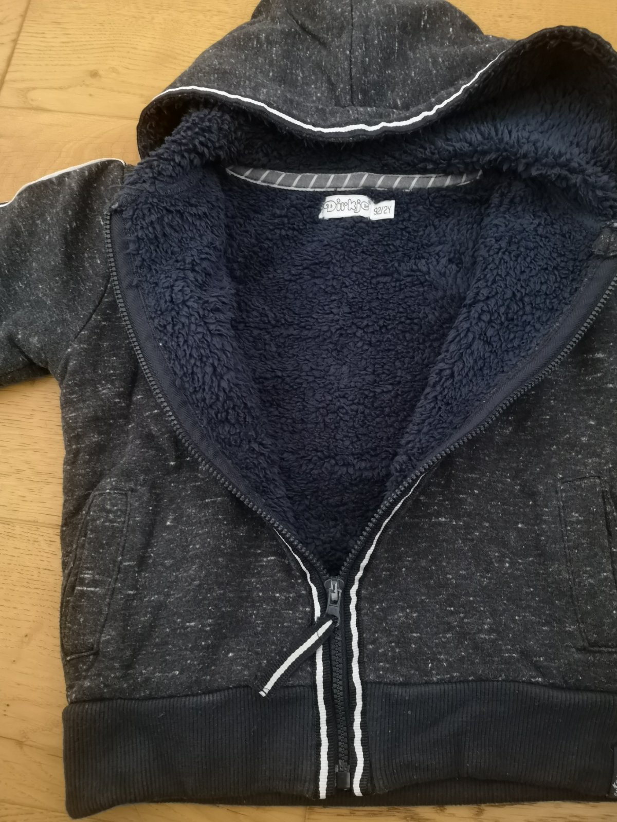 Teplá mikinka-bundička na chladné dni, celá podšitá kožúškom, bez poškodení, výborný stav, viď foto.