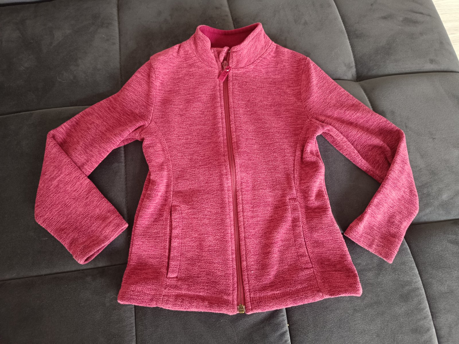 Krásna neonovo ružová flisova mikina super stav Šírka 37 cm, rukáv 47cm, dĺžka 47cm, Veľ. 122 /128