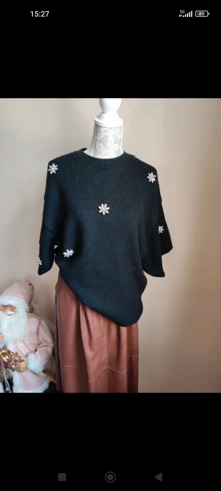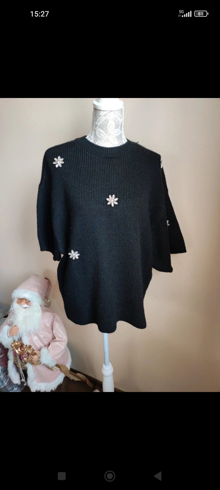 Predám nový sveter s výsackou nesadla veľkosť z 15€ na 13€ je teplý kvalitný a krásne trblietavý