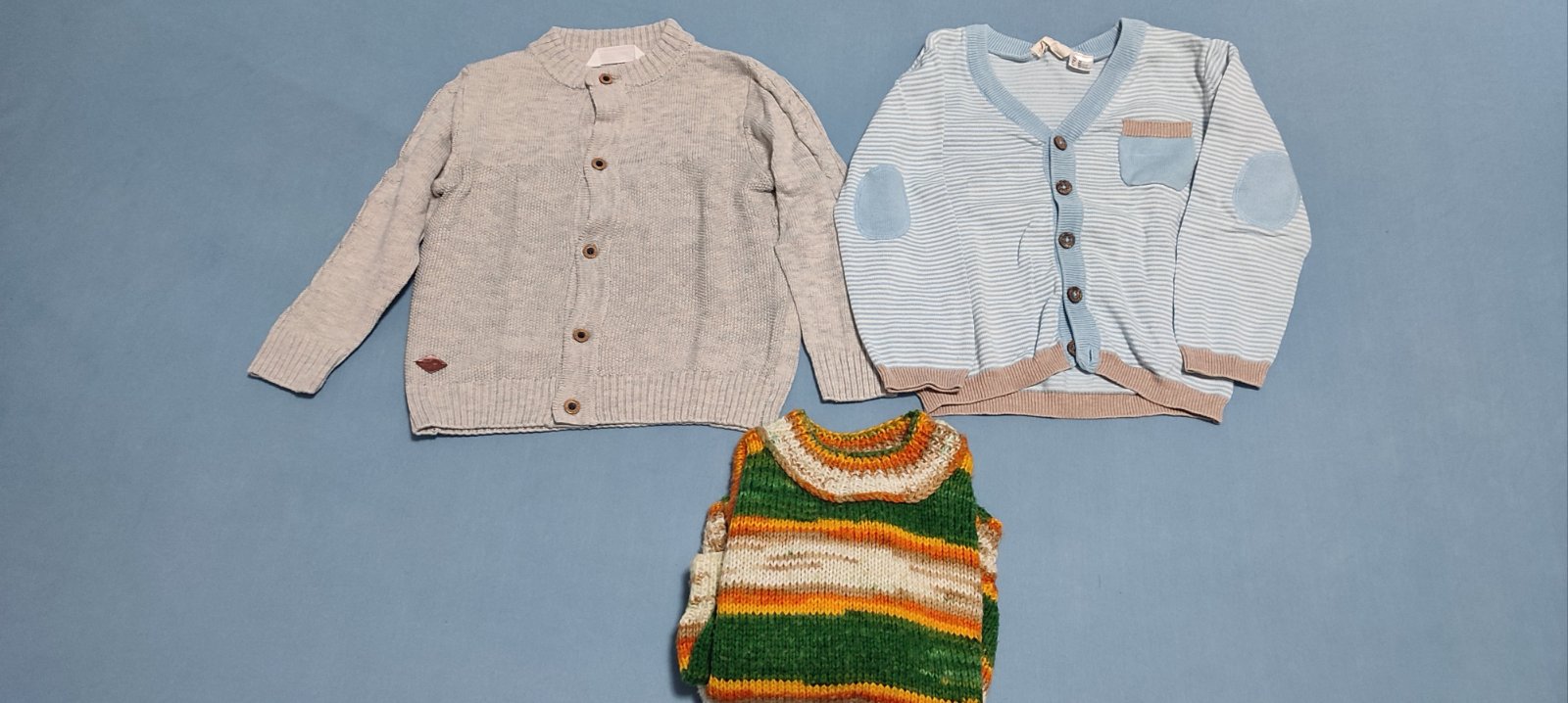Nosené svetríky v krásnom stave, sivý Coccodrillo je mäkký a veľmi príjemný, veľkosť 86. Modrý Lupilu, veľkosť 86/92. K tomu darujem nosený hrubý vlnený svetrík.