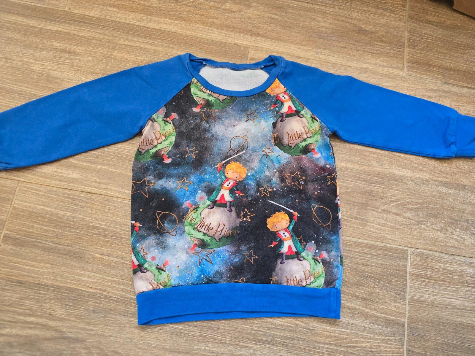 Naozaj krásna mikina s volánikmi na zadnej strane vo veľmi peknom odtieni modrej. Sadne aj ako 116.