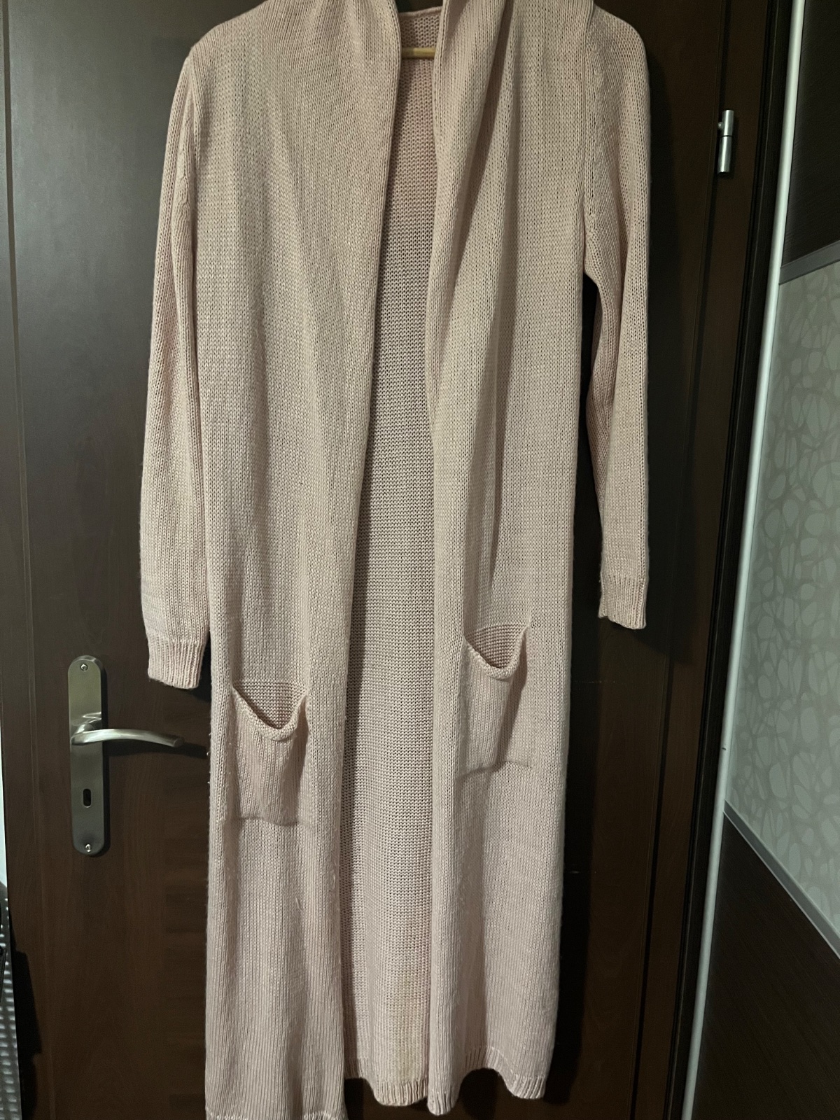 Nádherný a teply sveter v bledoruzovej farbe . Úplne nový . Vhodný na každú velkost … s kapucňou .