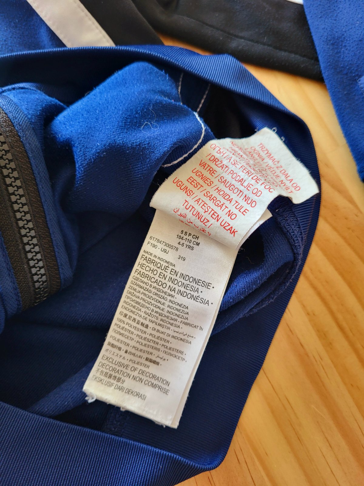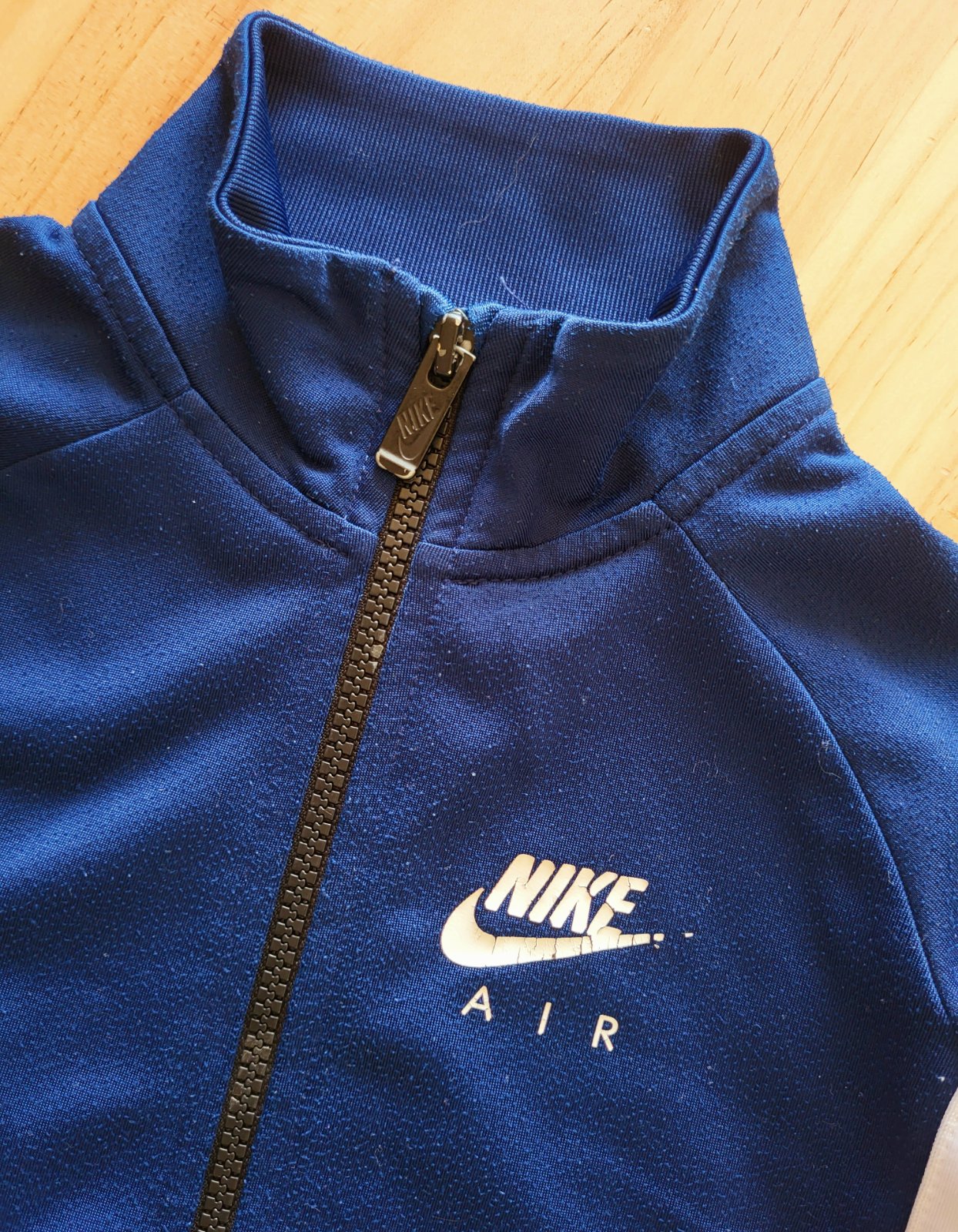 dobrý stav, žmolky, bočné vačky, predná potlač je popraskaná, 100%polyester, modrá farba je v skutočnosti tmavšia ako na fotkách, poštovné doporučene 3€