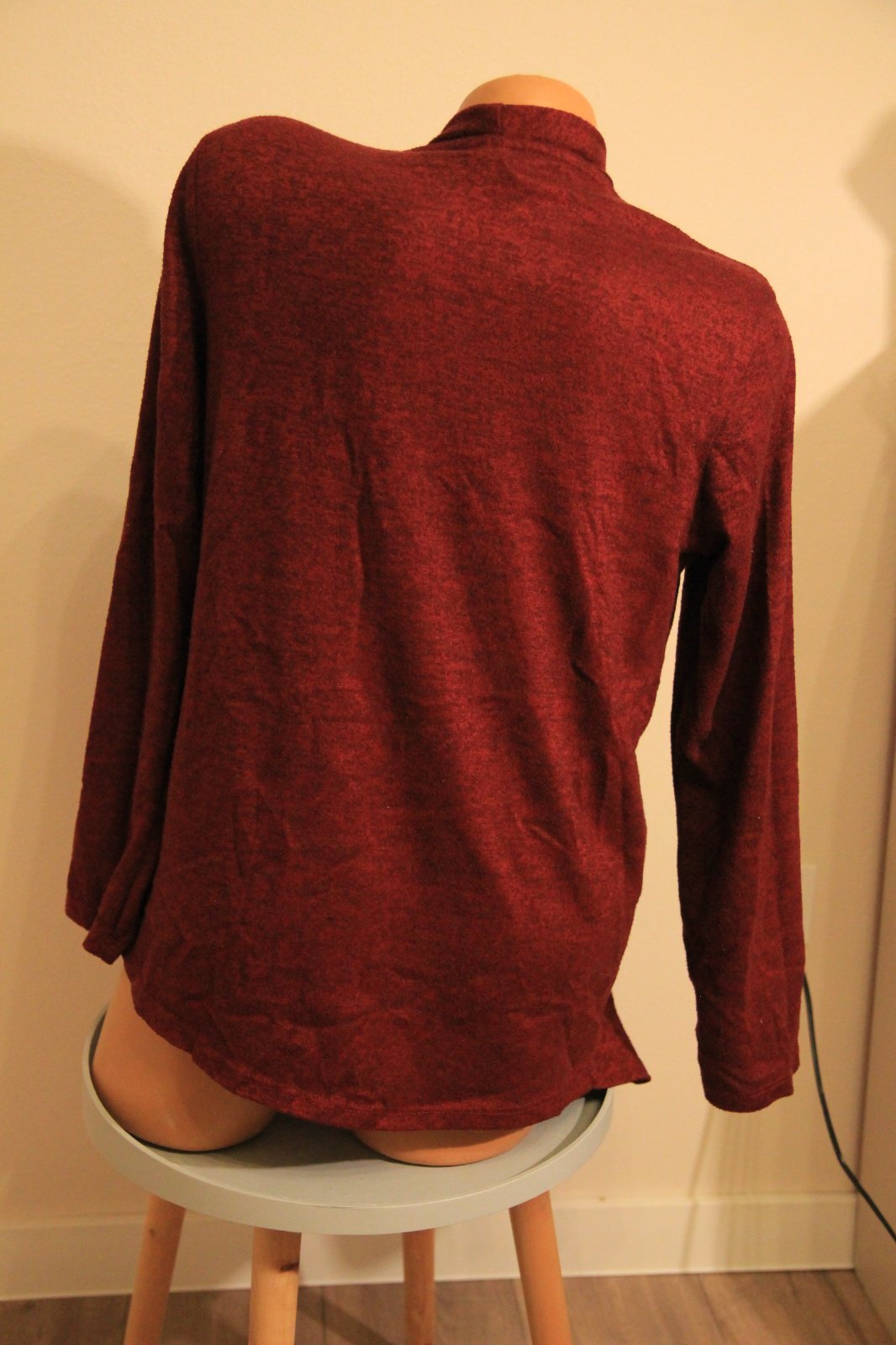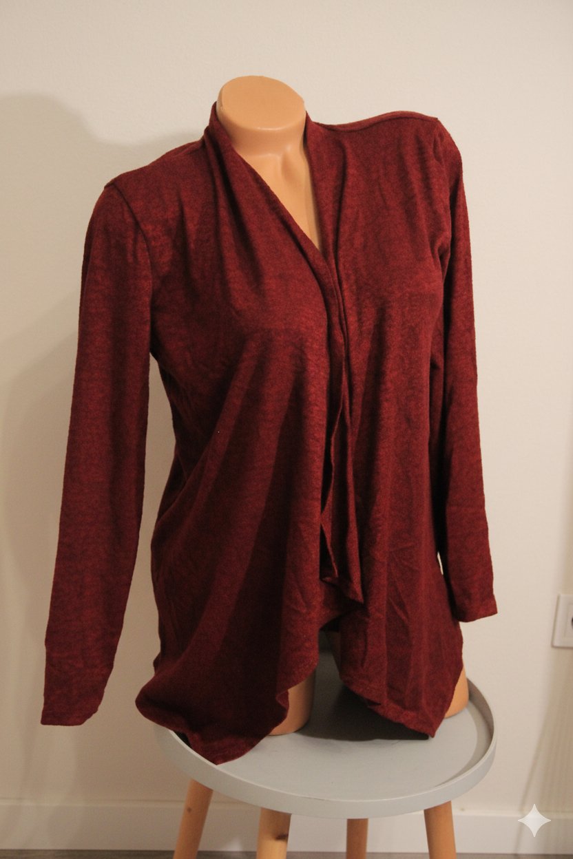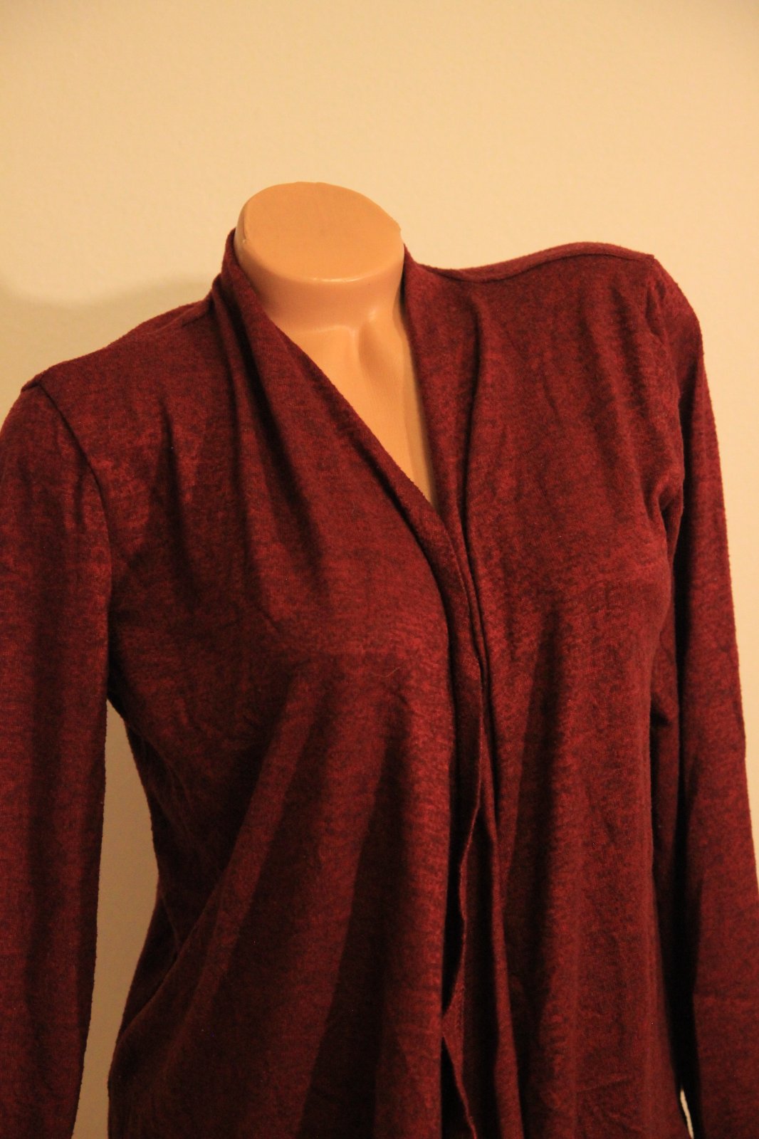 Červeno brodový kardigan bez zapínania, veľkosť M, nosený bez poškodení.