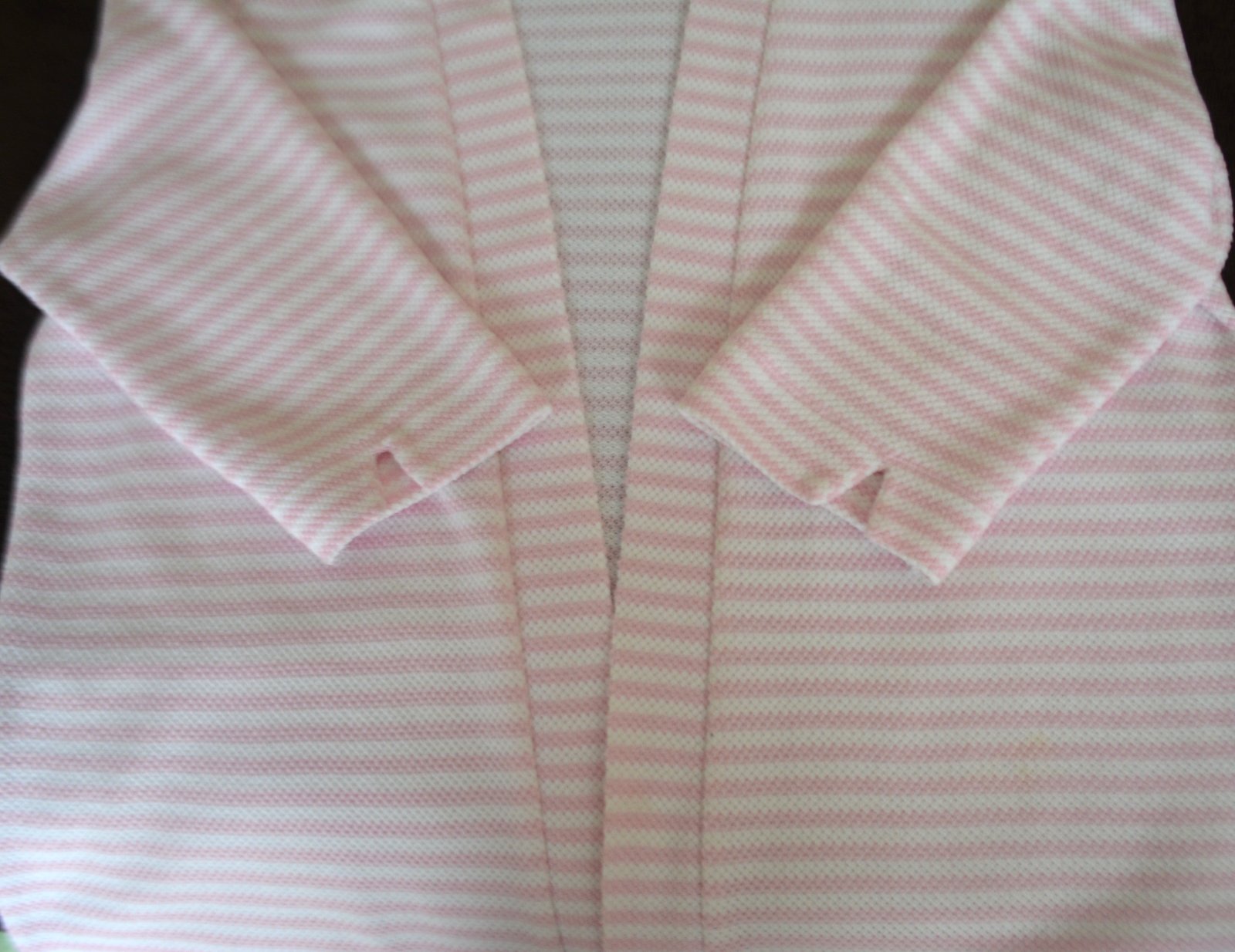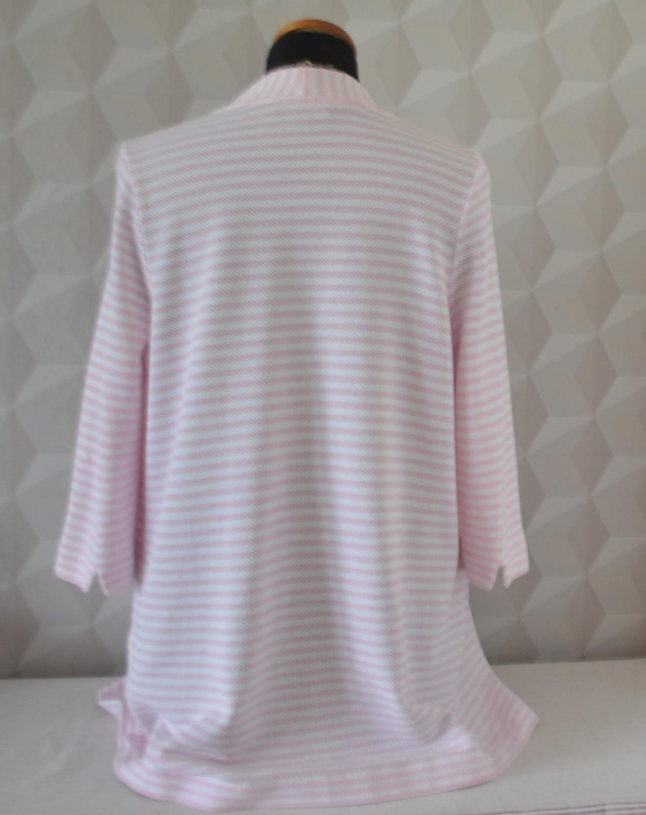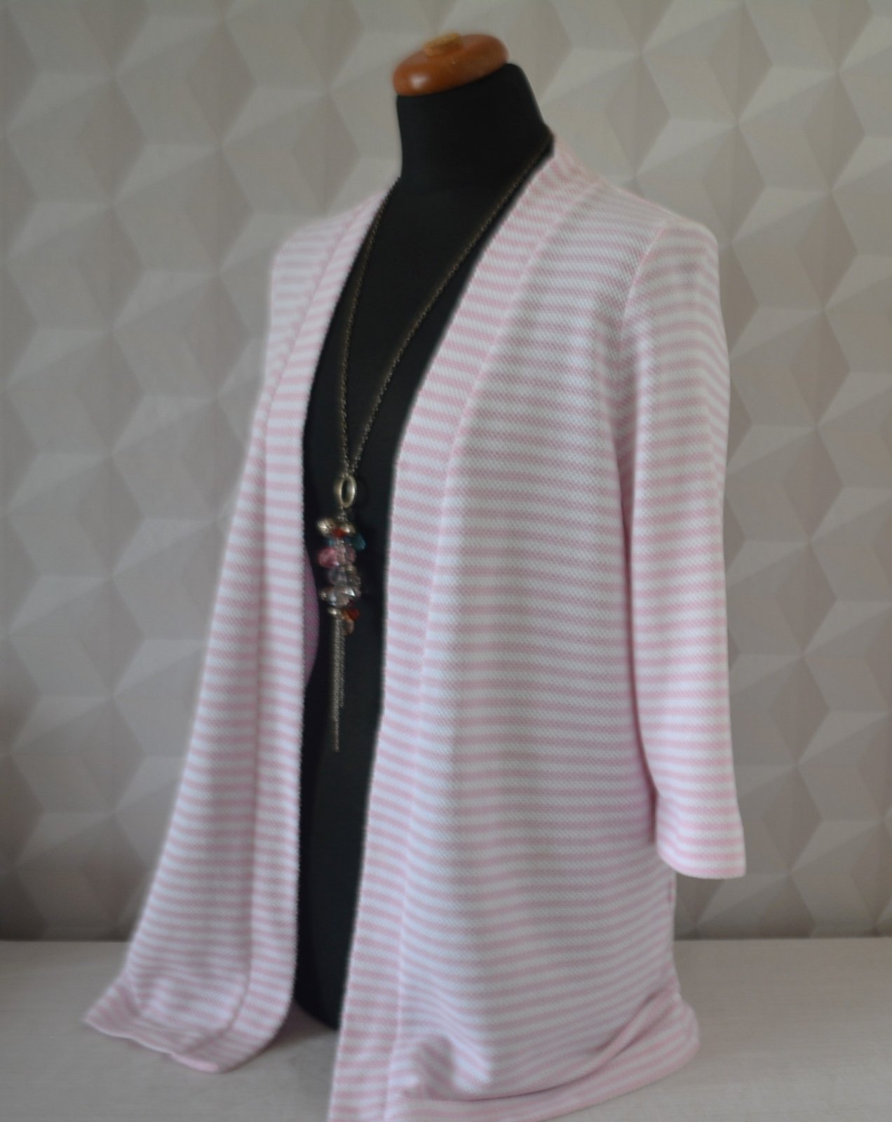 Dámsky kardigán Bonita, bielo-ružovo prúžkovaný, bez zapínania.
