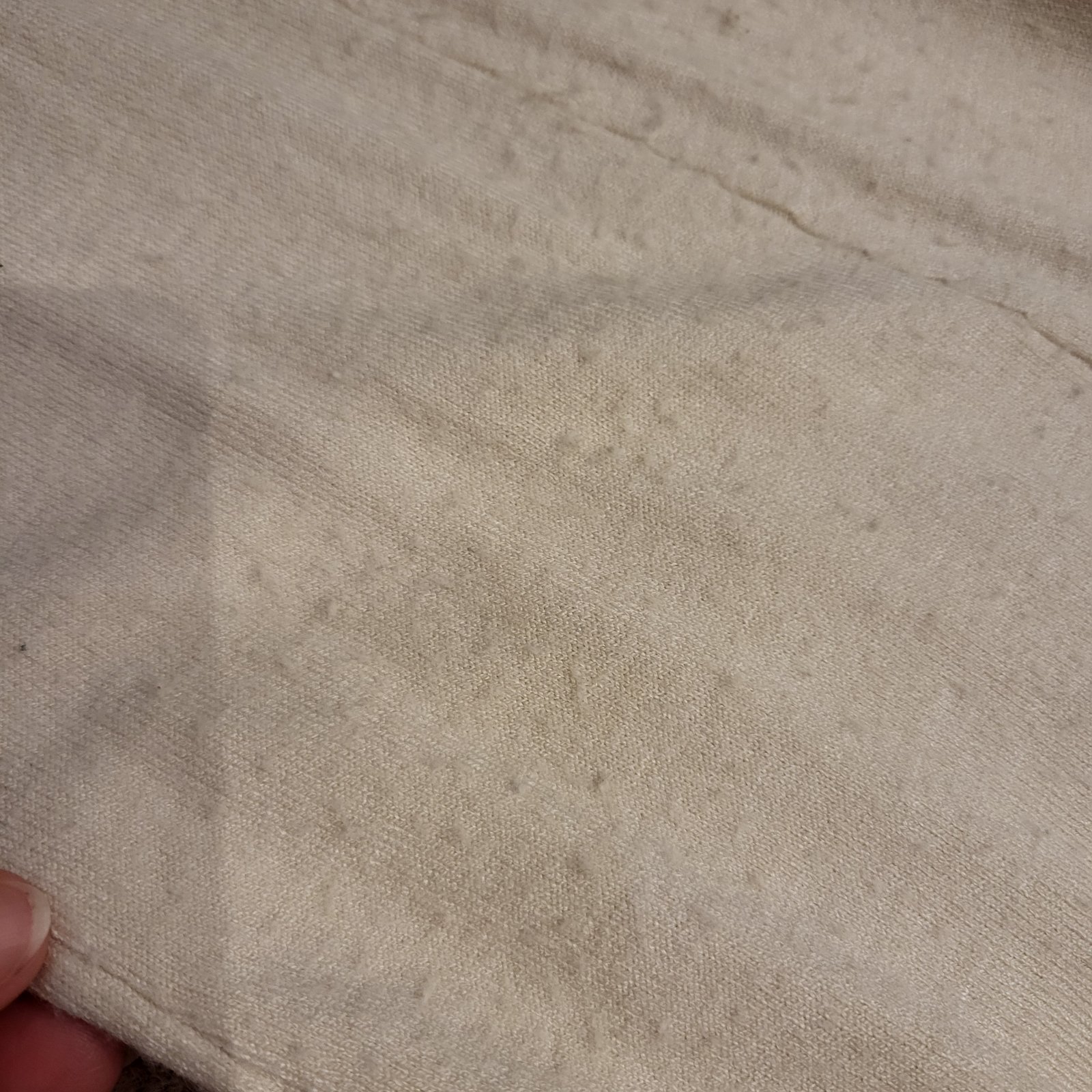 Pri nosených veciach môžu byť známky nosenia ako sú nedopraté fliačiky, jemné žmolky a pod. Niektoré veci si nevšimnem, tiež som len človek, fotím aj v noci pri umelom osvetlení, môže sa stať že niečo prehliadnem, v takom prípade má prosím, kontaktujte. No zároveň apelujem na kupujúcich, že ide o veci NOSENÉ, je teda zrejme, že môžu mať bežné známky nosenia. Čomu zodpovedá aj cena. Ak chcete veci nove a bezchybne, choďte si nakúpiť veci do obchodu za plnú cenu a nie v bazariku za par drobných. Veci periem na 30°C, niekedy na oblečení môžu zostať nie celkom dopraté fliačiky - tiene, ak sa fliačik nájde, treba len dôkladnejšie oprať.