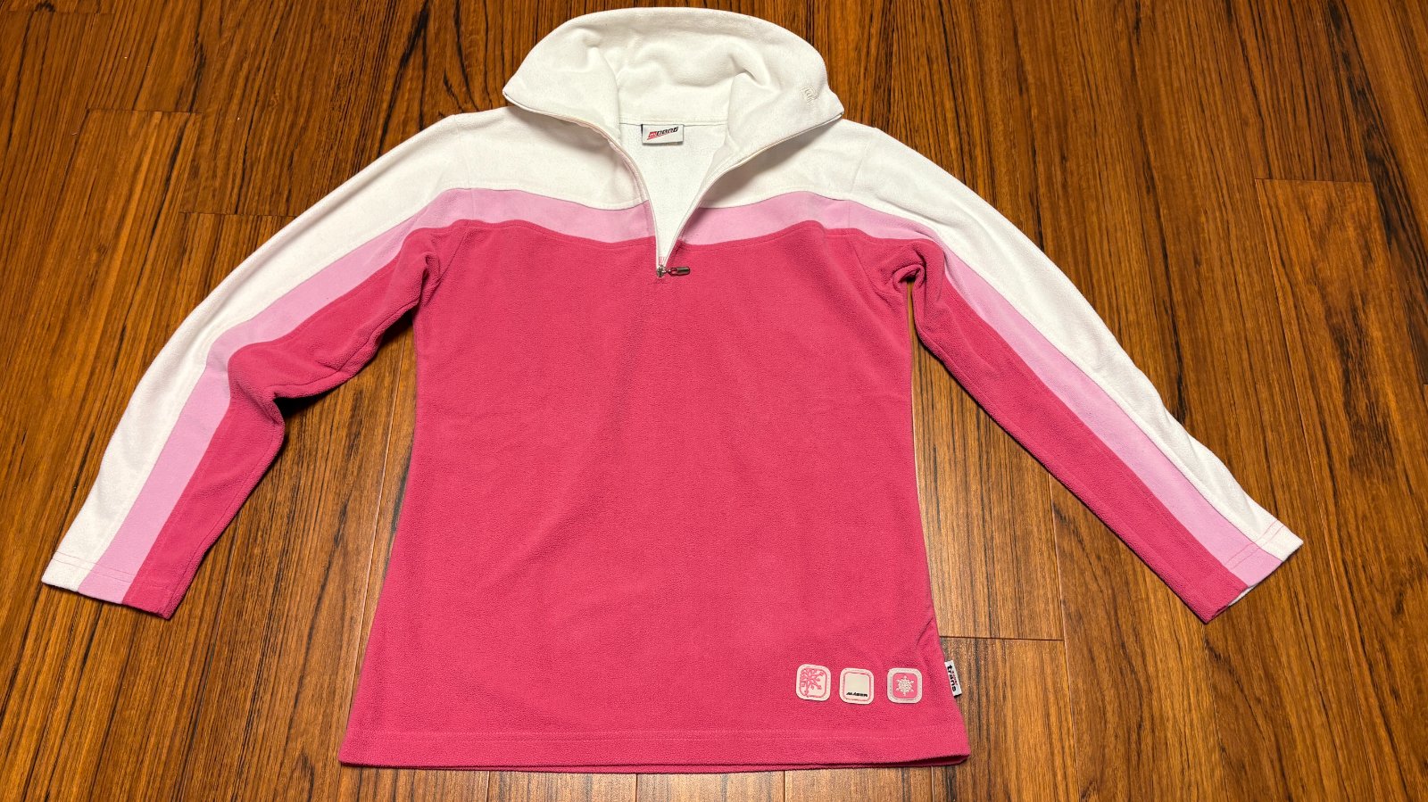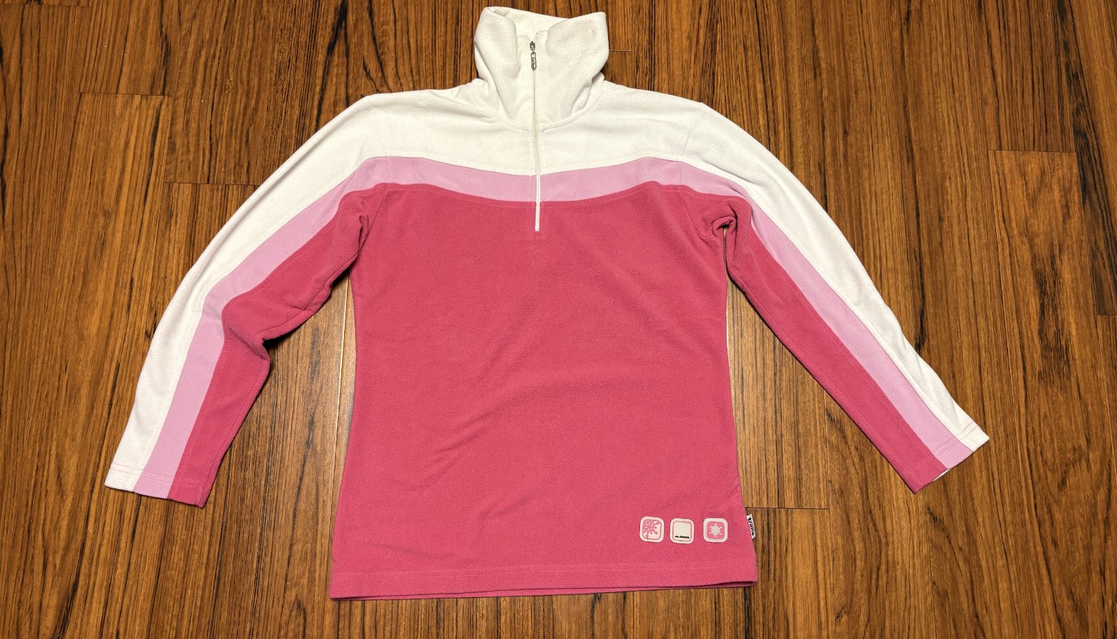 Tenká flisová mikina, veľkosť 38, obliekanie cez hlavu.